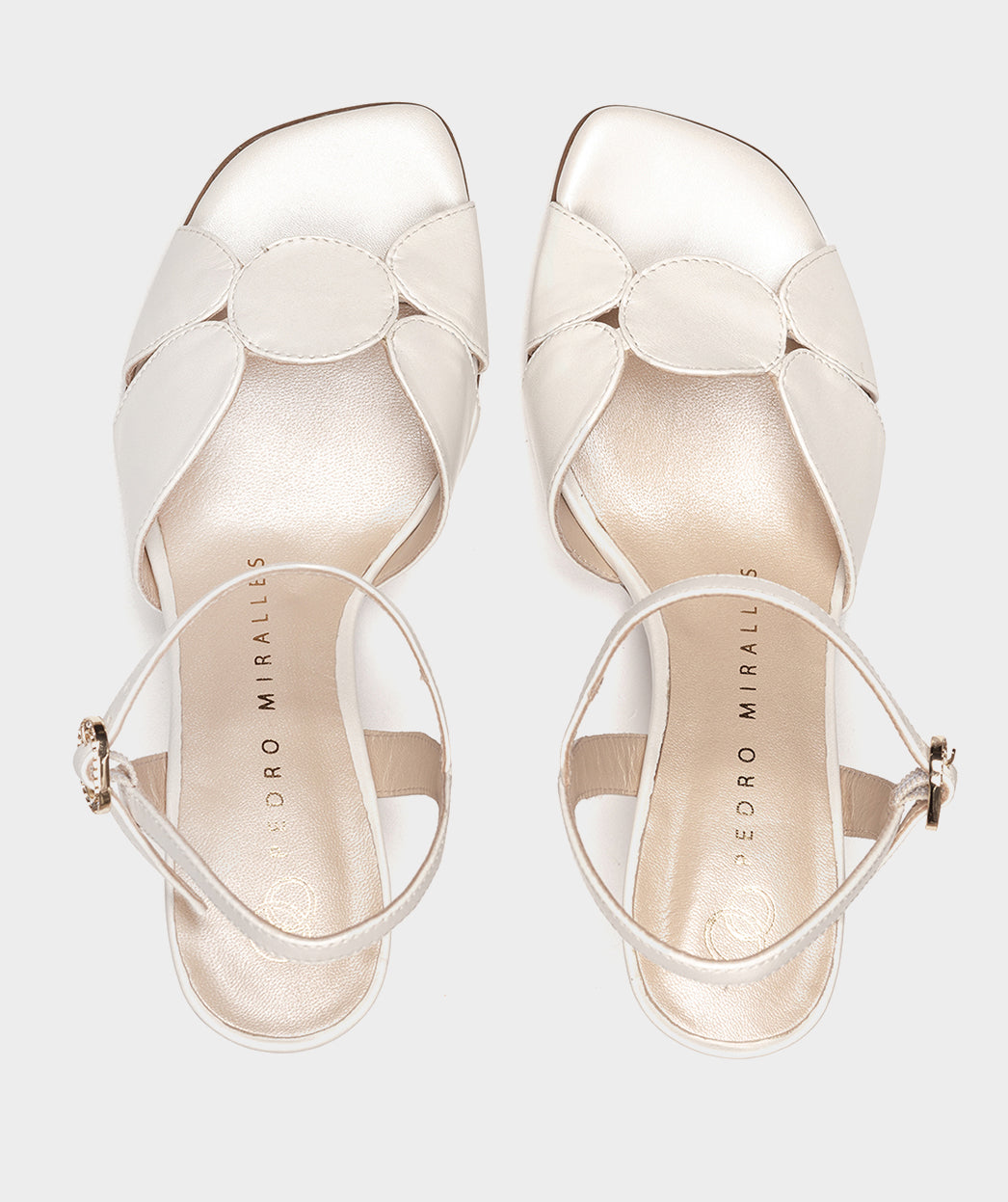 Sandales à talons en cuir blanc. Une nouvelle version du modèle emblématique BALI avec un talon plus bas. Élégance, sophistication et style dans une seule chaussure parfaite pour les occasions spéciales.