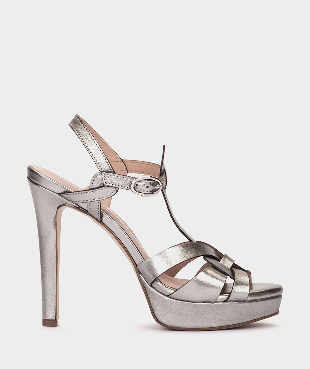 Sandales à talon en cuir couleur acier métallisé. Fabriquées avec un talon haut et audacieux pour être plus confortables que vous ne l'imaginez, surtout lorsqu'elles sont combinées avec la plateforme. Les sandales Copenhagen vous feront éblouir avec n'importe quel look..