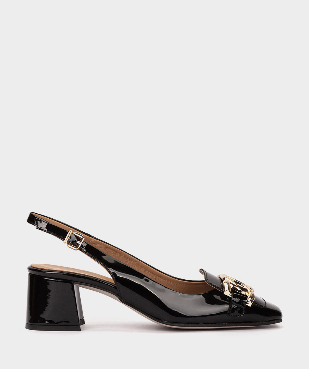 Escarpins slingback en cuir verni noir. LIGURIA est l'option parfaite à combiner au quotidien sans perdre de vue la sophistication. Ajoutez de l'élégance à vos looks et choisissez le confort avec ce modèle.