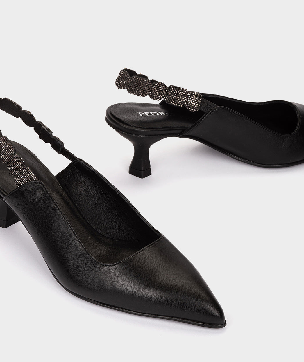 Chaussures à talon ouvert en cuir noir. Confort et style s'unissent pour créer le modèle ESLIDA. Si vous recherchez une chaussure élégante mais que votre priorité est le confort, cette option est idéale pour vous.
