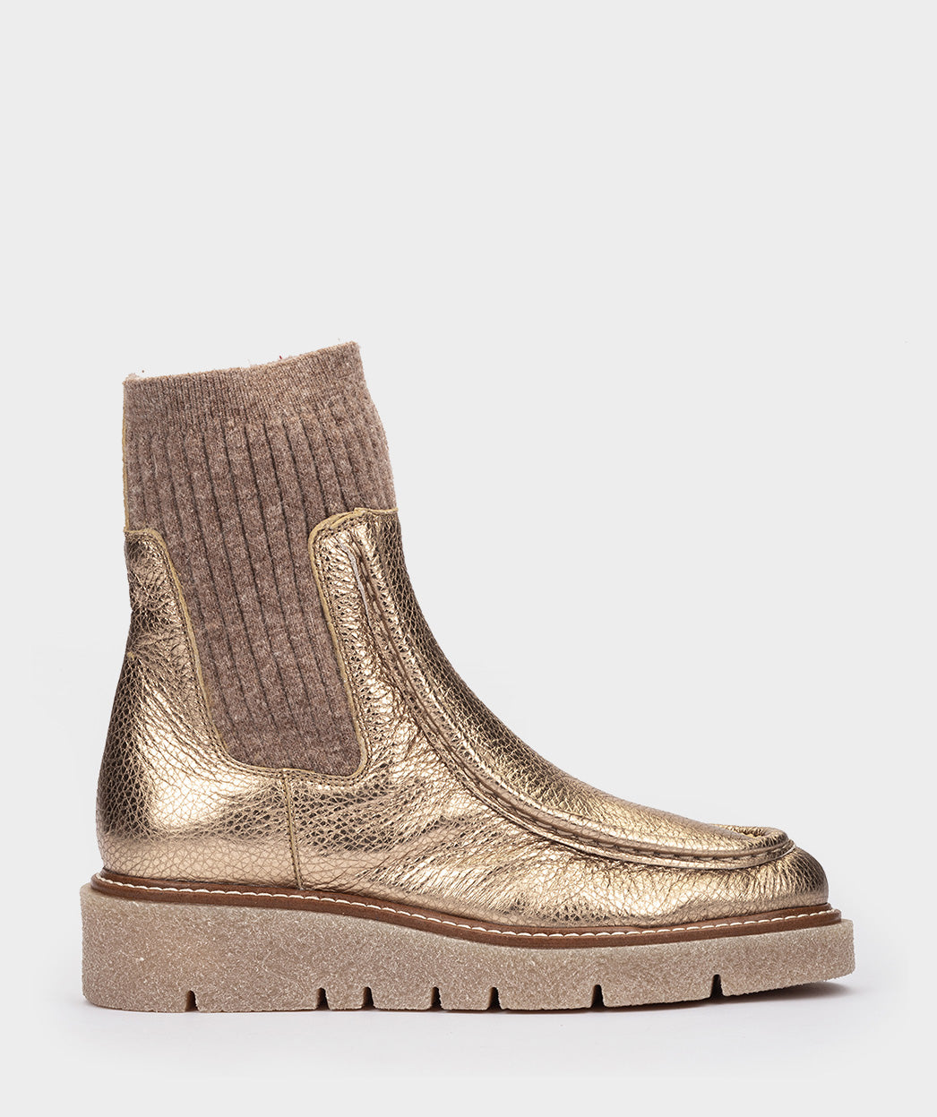 Bottines en cuir métallisé de couleur or. Le design des bottines Patagonia s'adapte parfaitement au pied, l'enveloppant de confort et de sophistication. Un modèle idéal pour les femmes frileuses, à porter tout au long de l'hiver, en ville, dans les loisirs ou au travail.