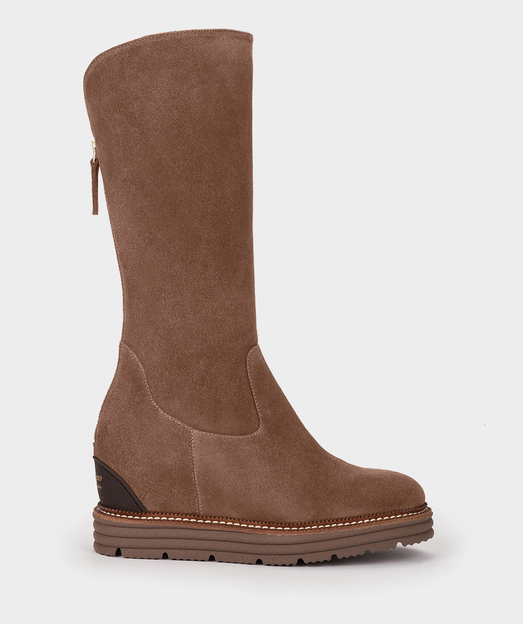 Bottes en daim marron clair. Le modèle MALTA se distingue par son design moderne, dont la large tige capte toute l'attention. De plus, ils disposent d'une cale intérieure, parfaite pour ceux qui recherchent de la hauteur sans renoncer au confort.