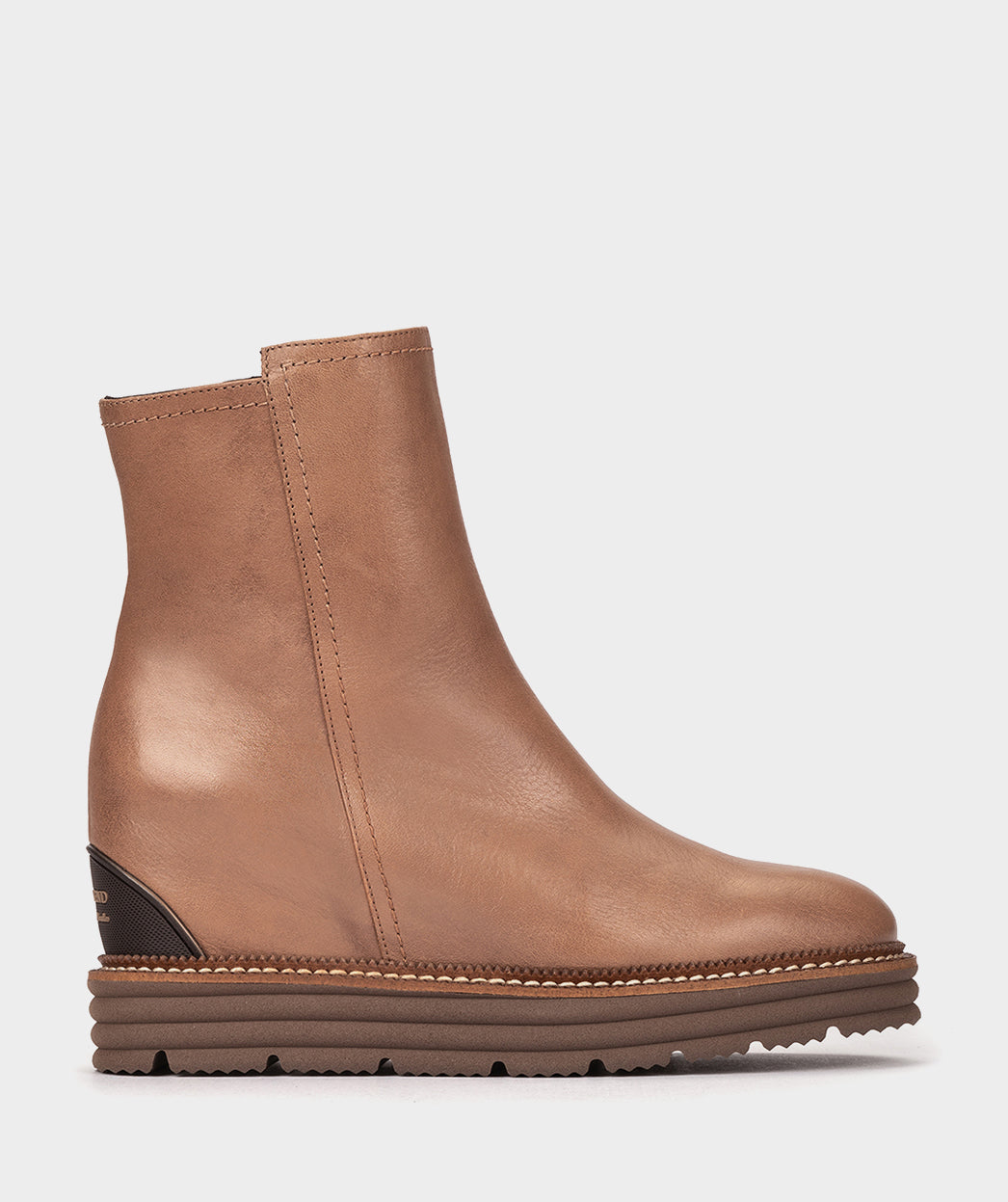 Bottines en cuir couleur camel. Un modèle qui allie design et confort. Misez sur des bottines à coin intérieur cette saison, elles seront vos meilleures alliées.