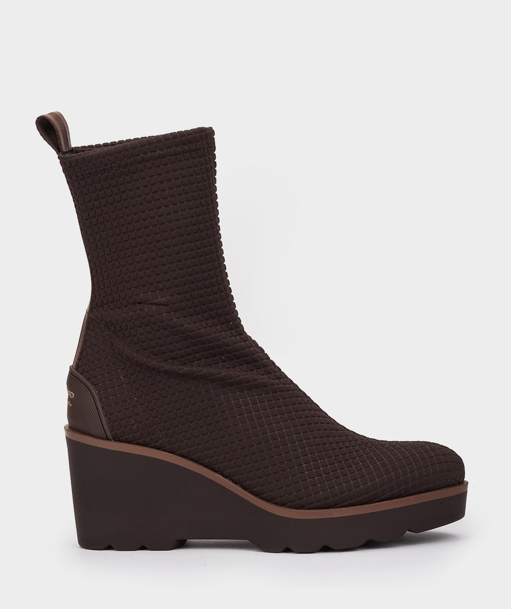 Bottines en tissu élastique texturé de couleur marron. Les bottines HITA sont fabriquées à partir de notre tissu extensible populaire pour un ajustement optimal. Ce modèle basique et intemporel deviendra un incontournable de votre garde-robe.