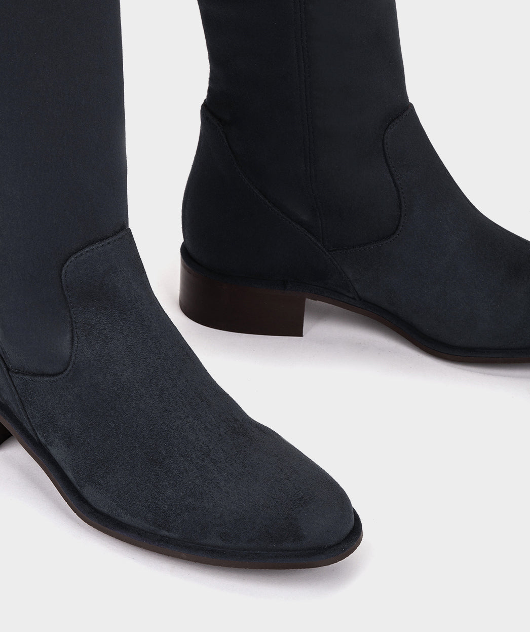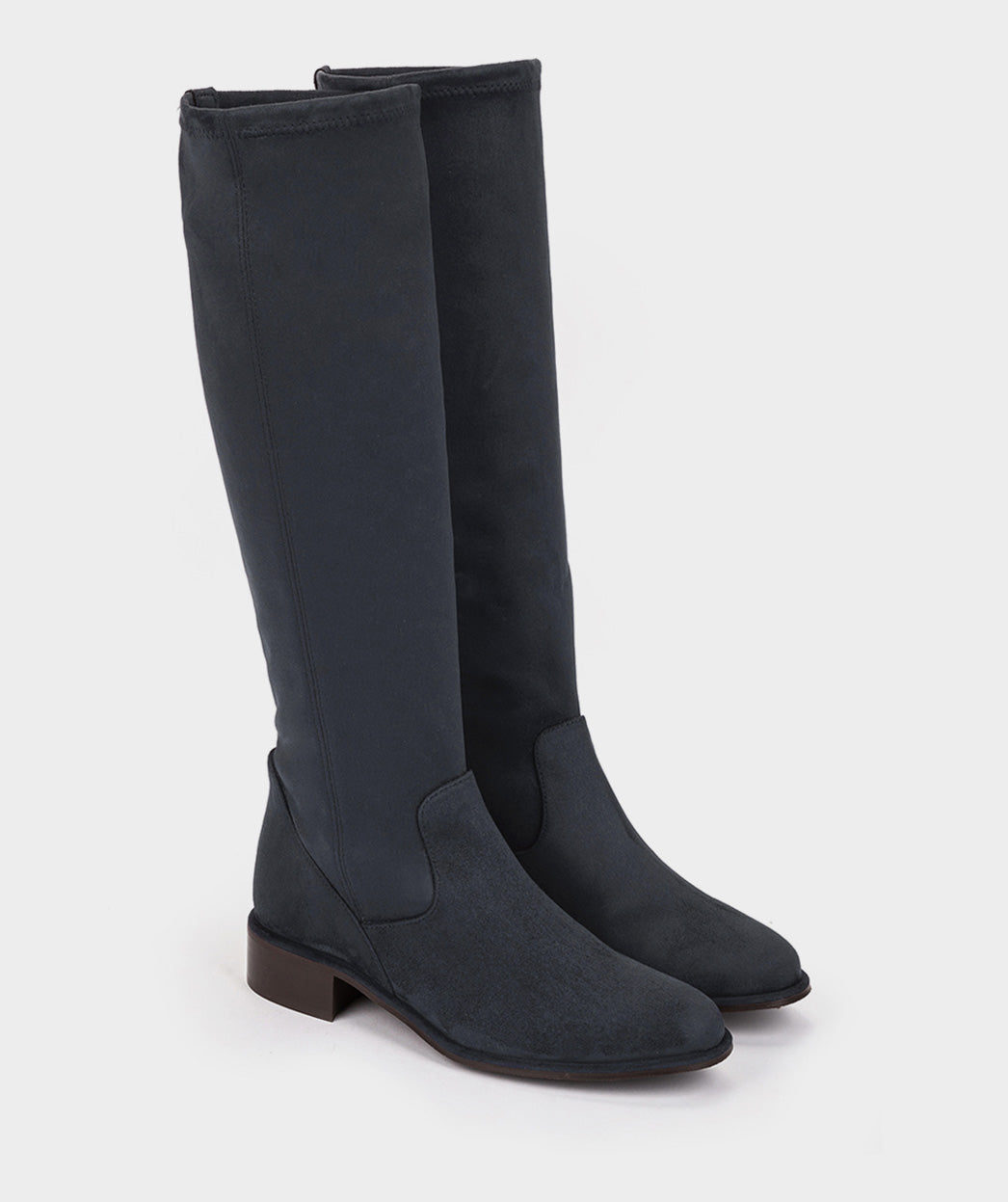 Bottes en tissu élastique effet daim bleu marine. C'est un modèle intemporel qui ne se démodera pas, son tissu élastique le rend très confortable et offre une adhérence inégalée.
