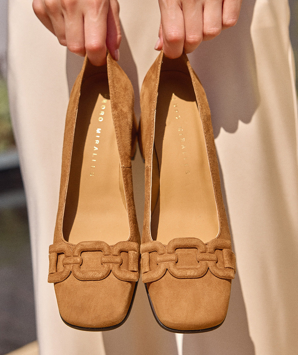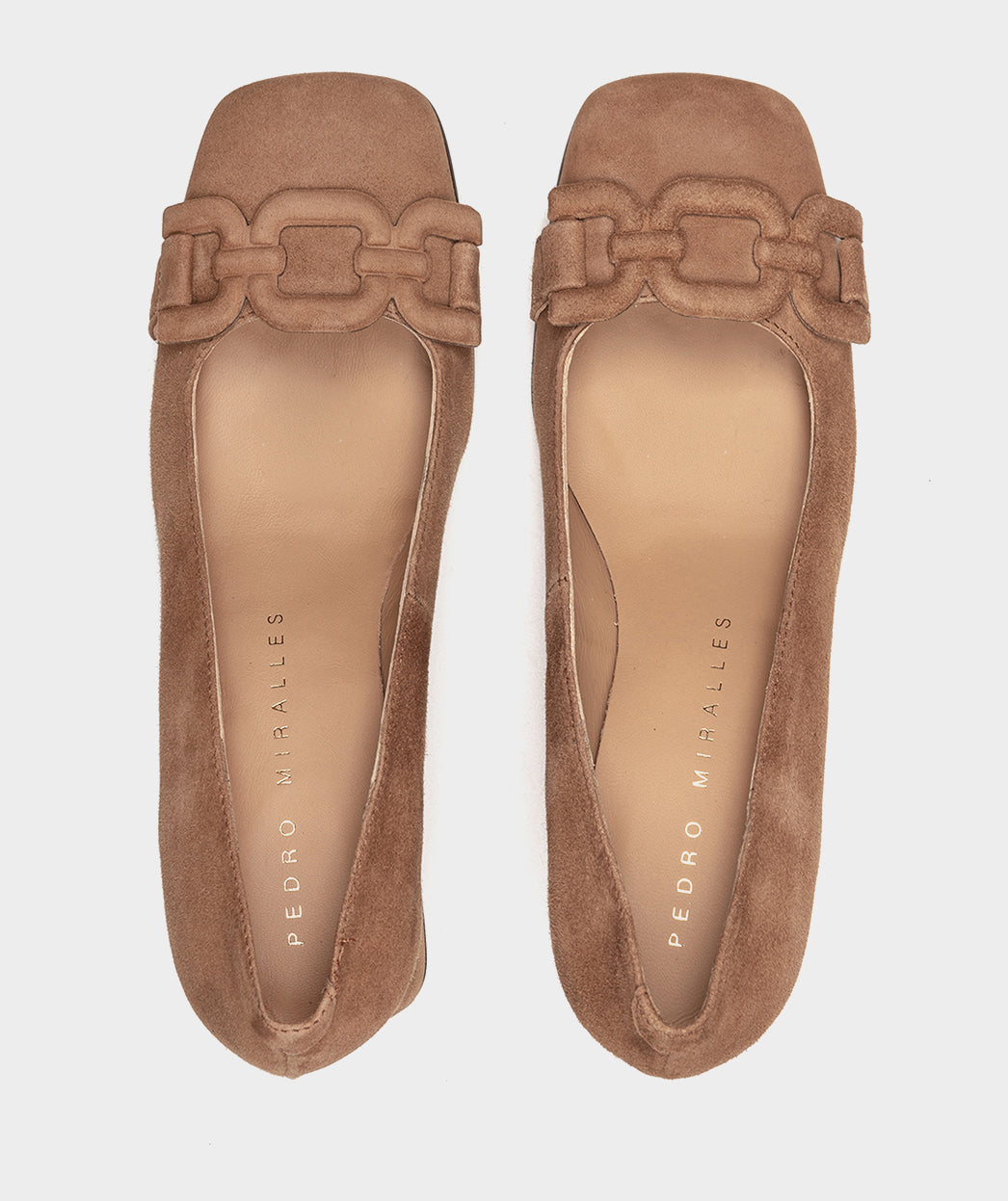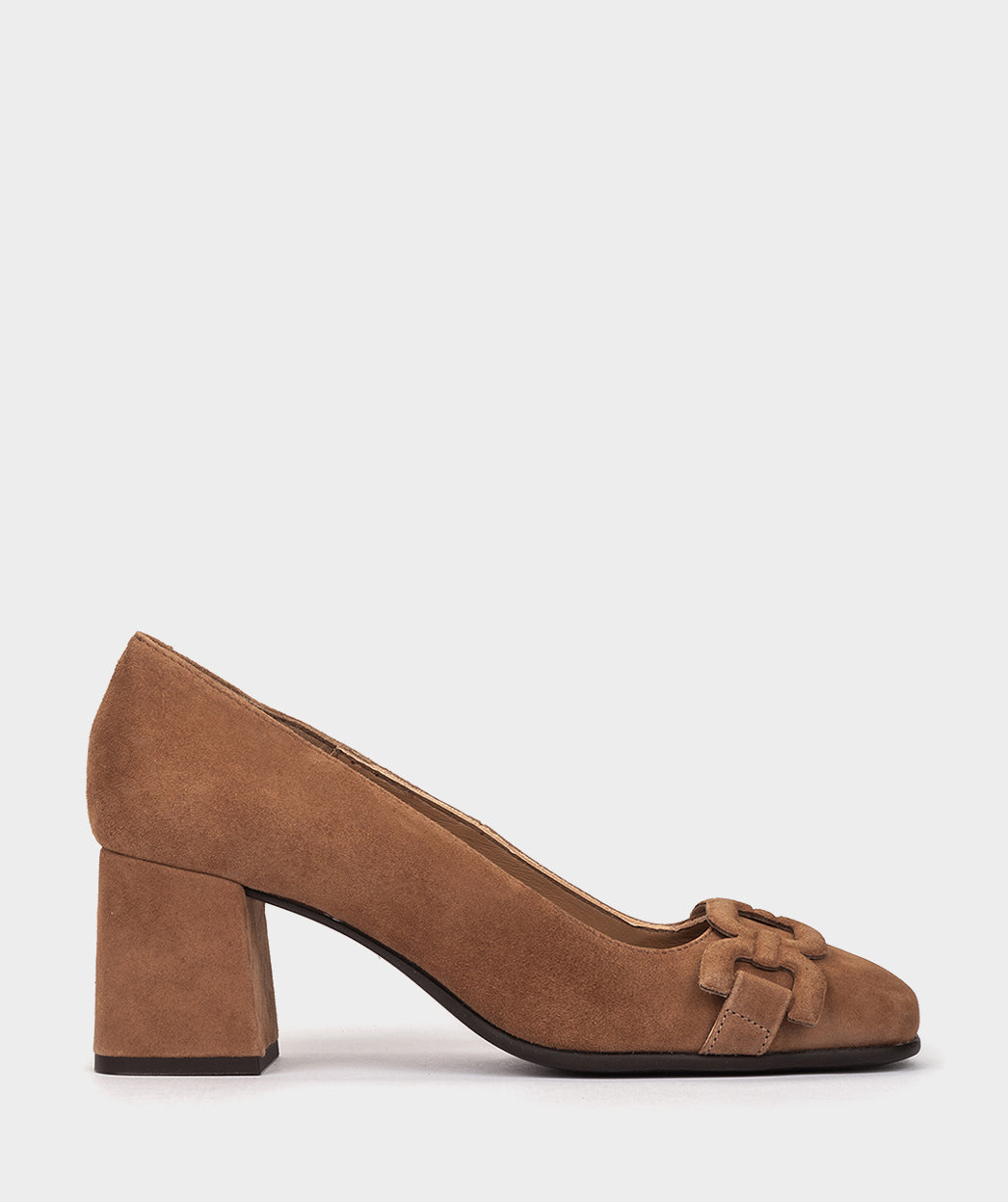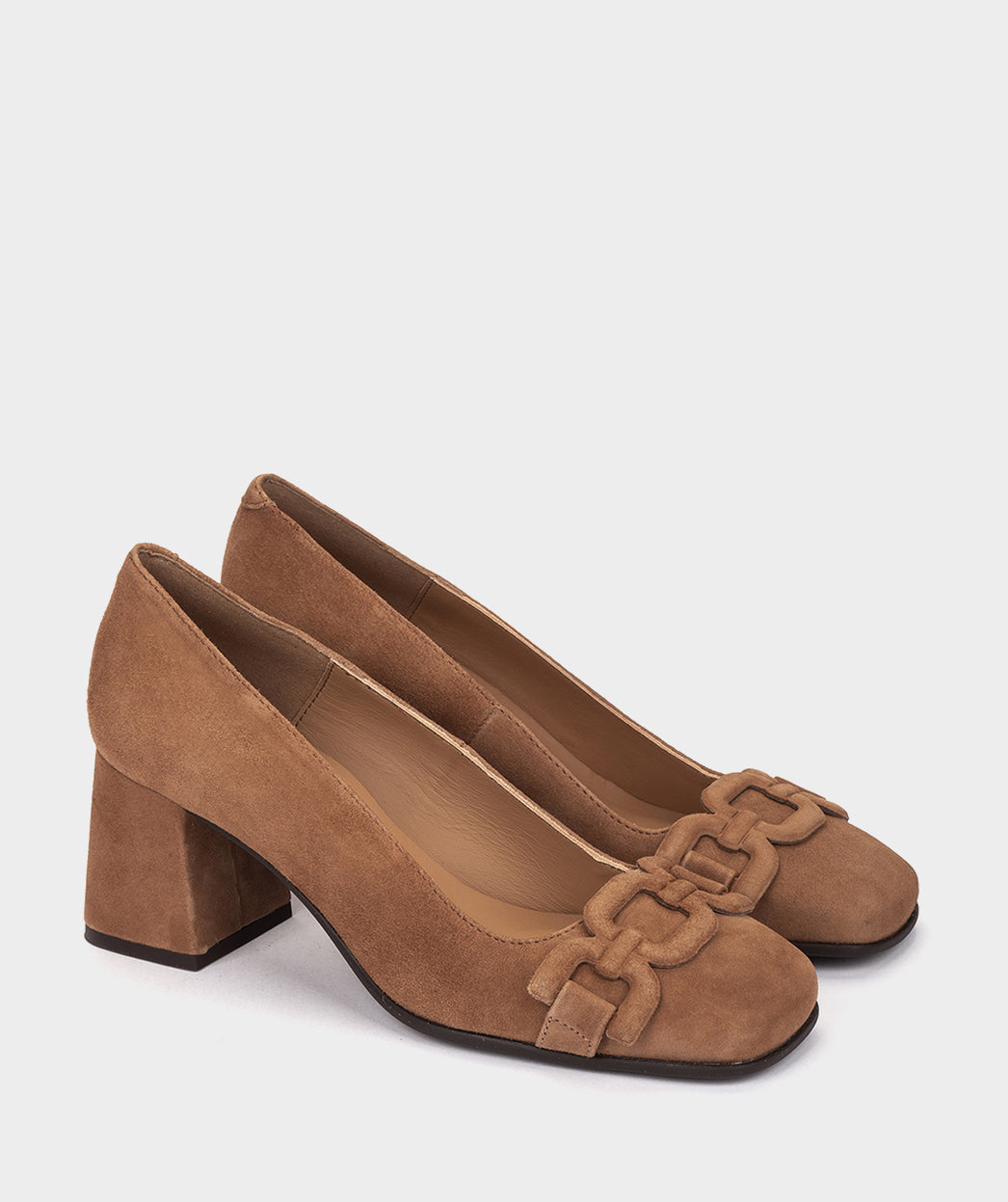 Talons hauts en daim marron. Un design sophistiqué et élégant pour compléter votre look de bureau. Ce modèle est un classique incontournable qui vous sauvera lorsque vous ne savez pas quelles chaussures porter.