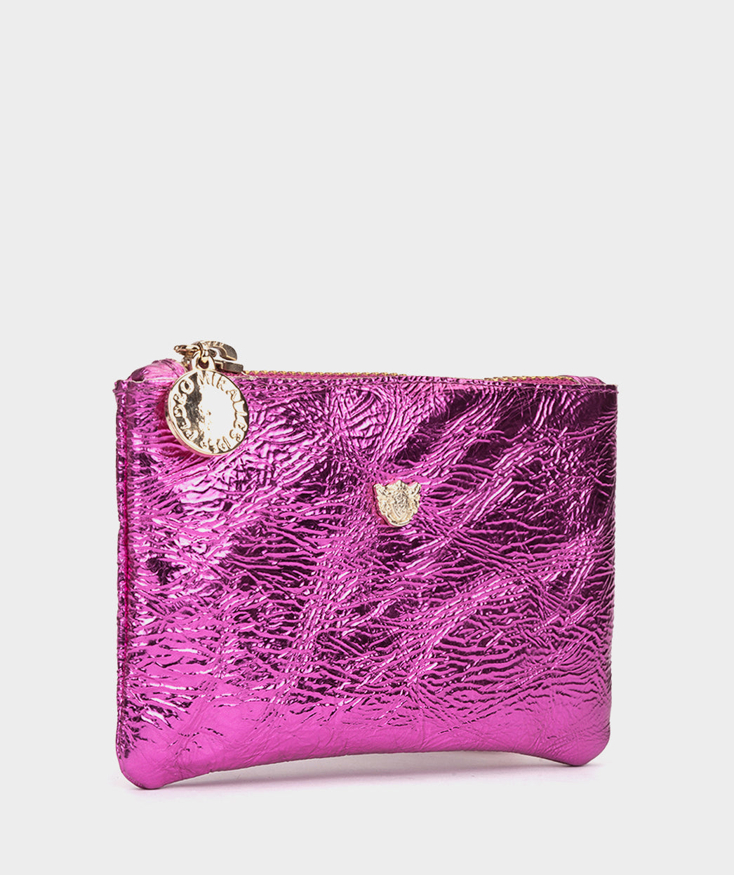 Porte-monnaie en cuir gaufré avec fermeture éclair