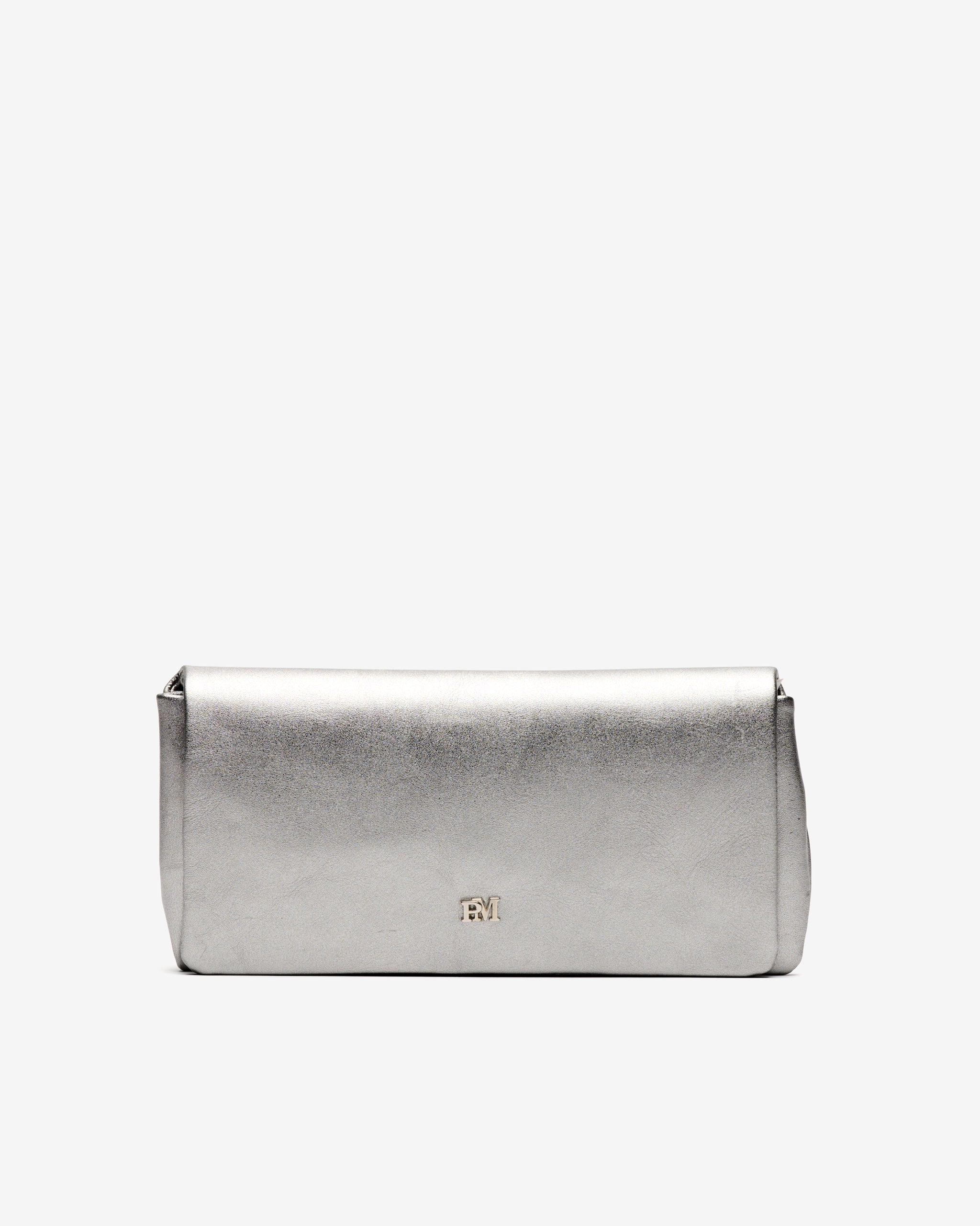 Sac de fête en cuir métallique gris. Un modèle parfait à porter lors d’événements et d’occasions spéciales. Il possède une fermeture à aimant et sa taille est idéale pour stocker vos essentiels. Il a une chaîne amovible, donc on peut le porter comme un sac bandoulière plutôt qu’un sac à main.