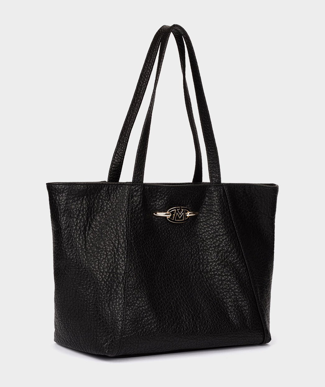 Sac bandoulière en cuir noir. Ce sac fourre-tout est parfait pour ranger tout ce dont vous avez besoin. Le renforcement de ses poignées en fait un modèle résistant. Il dispose d'une poche intérieure et d'une fermeture magnétique.