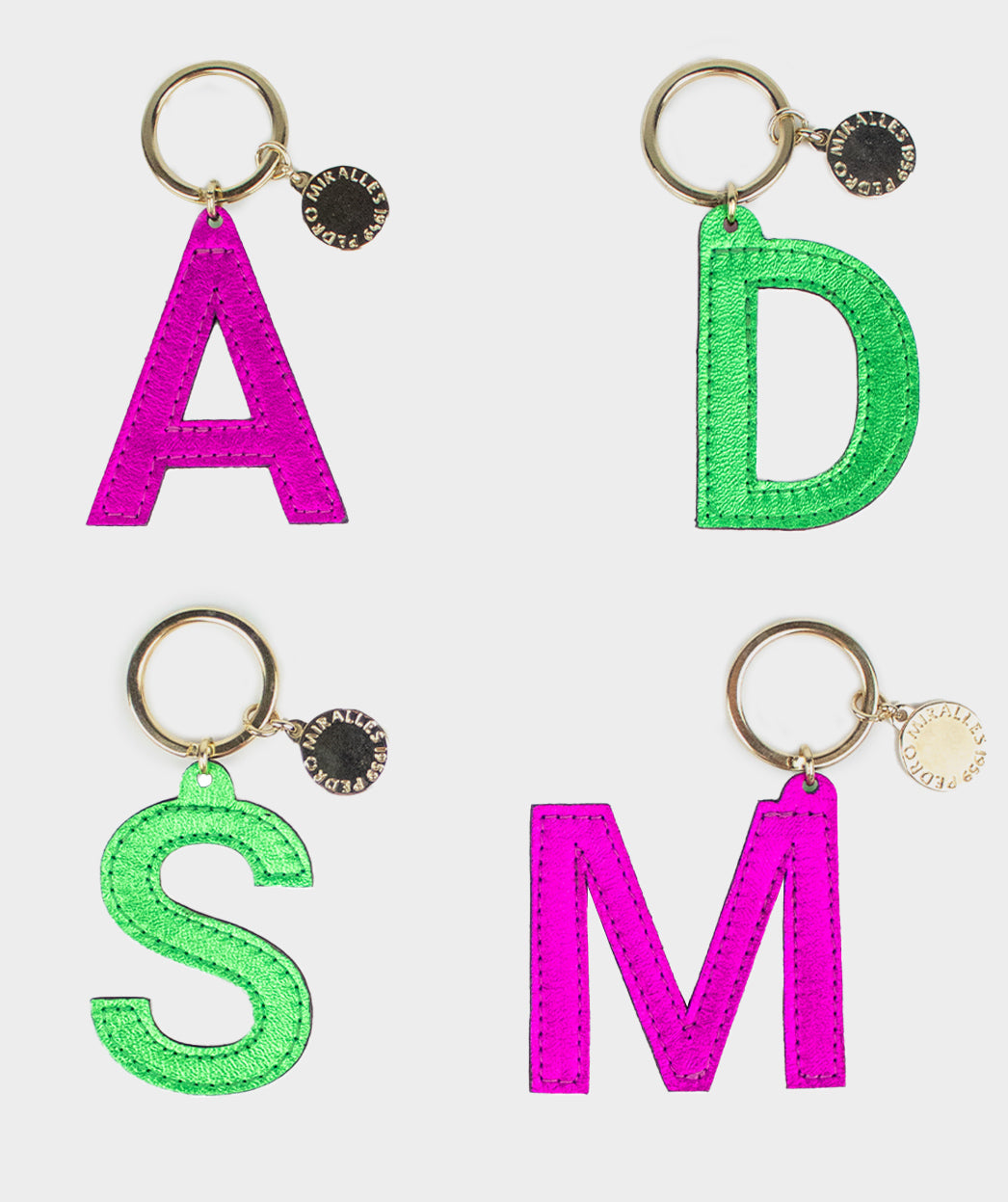LLAVERO INICIAL DE PIEL VERDE Y FUCSIA ACCESORIOS - ACCESORIOS