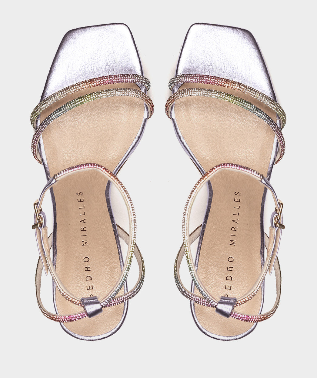 Sandalias de tacón de piel y adornos de cristales. La paleta de colores del modelo Florida permite adaptar las sandalias a diferentes estilos y ocasiones. El tacón estilizado y elegante, añade una dosis de sofisticación y eleva la postura de quien los lleva puestos.