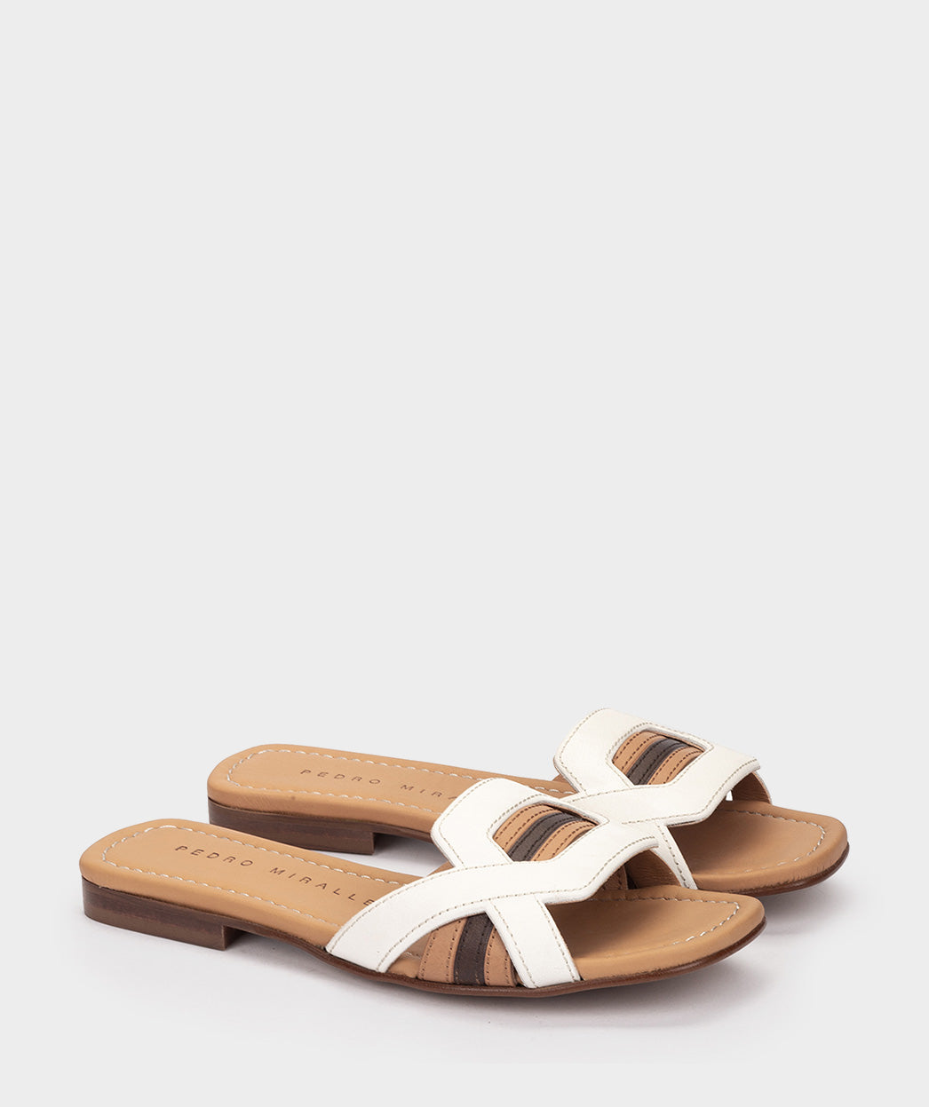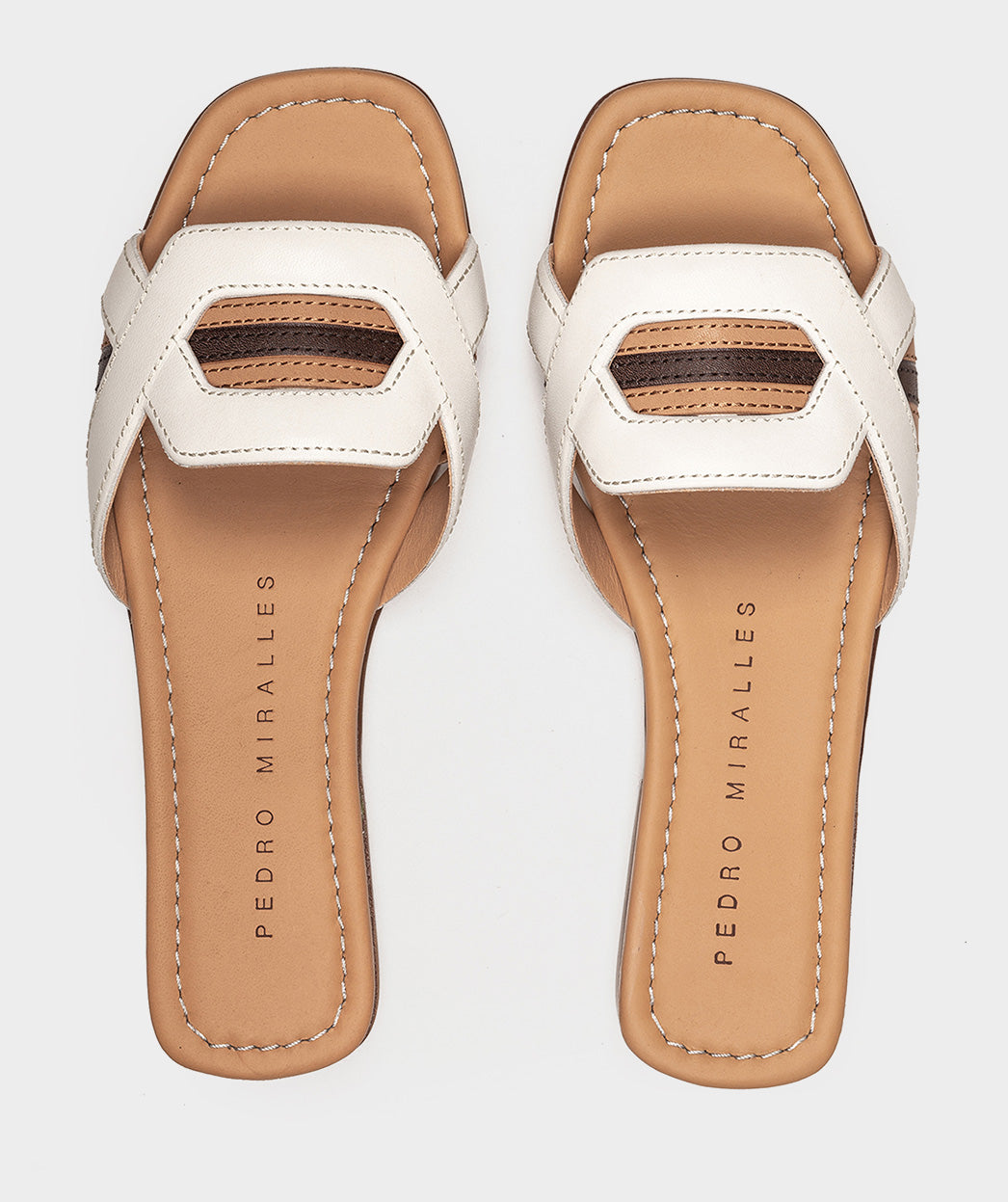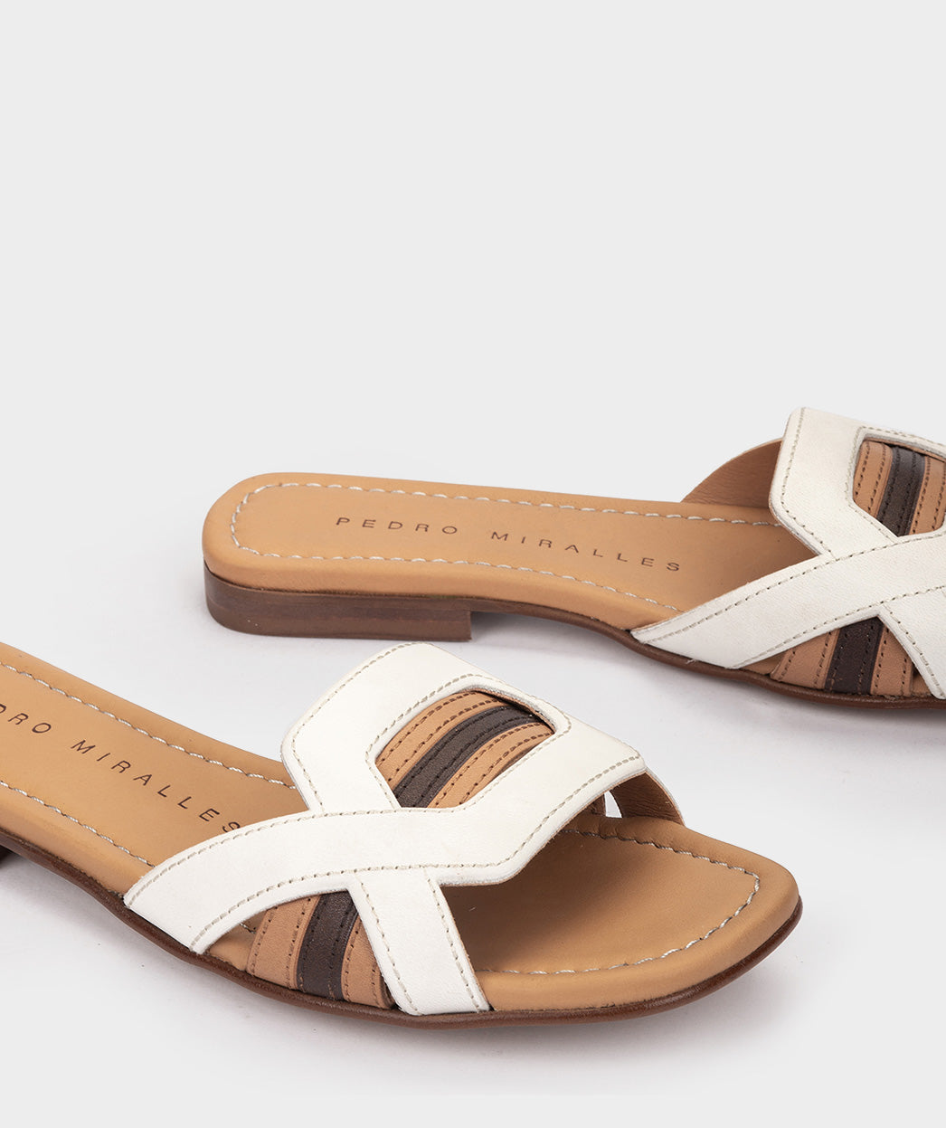 Sandalias planas de piel en color blanco roto. Sea cual sea tu estilo las sandalias Campello quedarán elegantes y sofisticadas en tus pies. Este modelo se convertirá en tu favorito del verano.