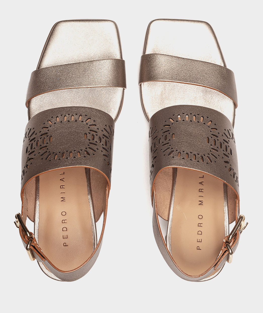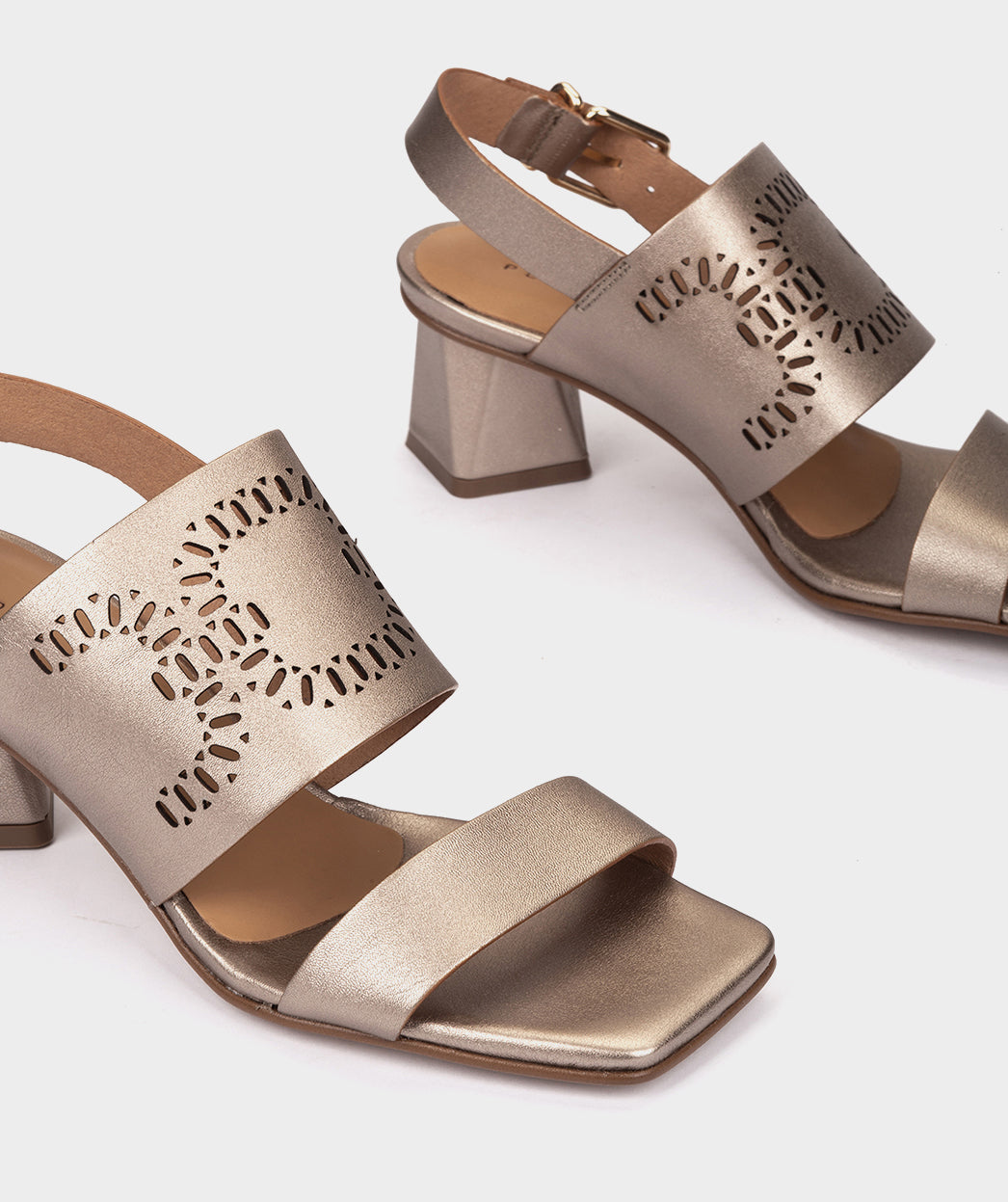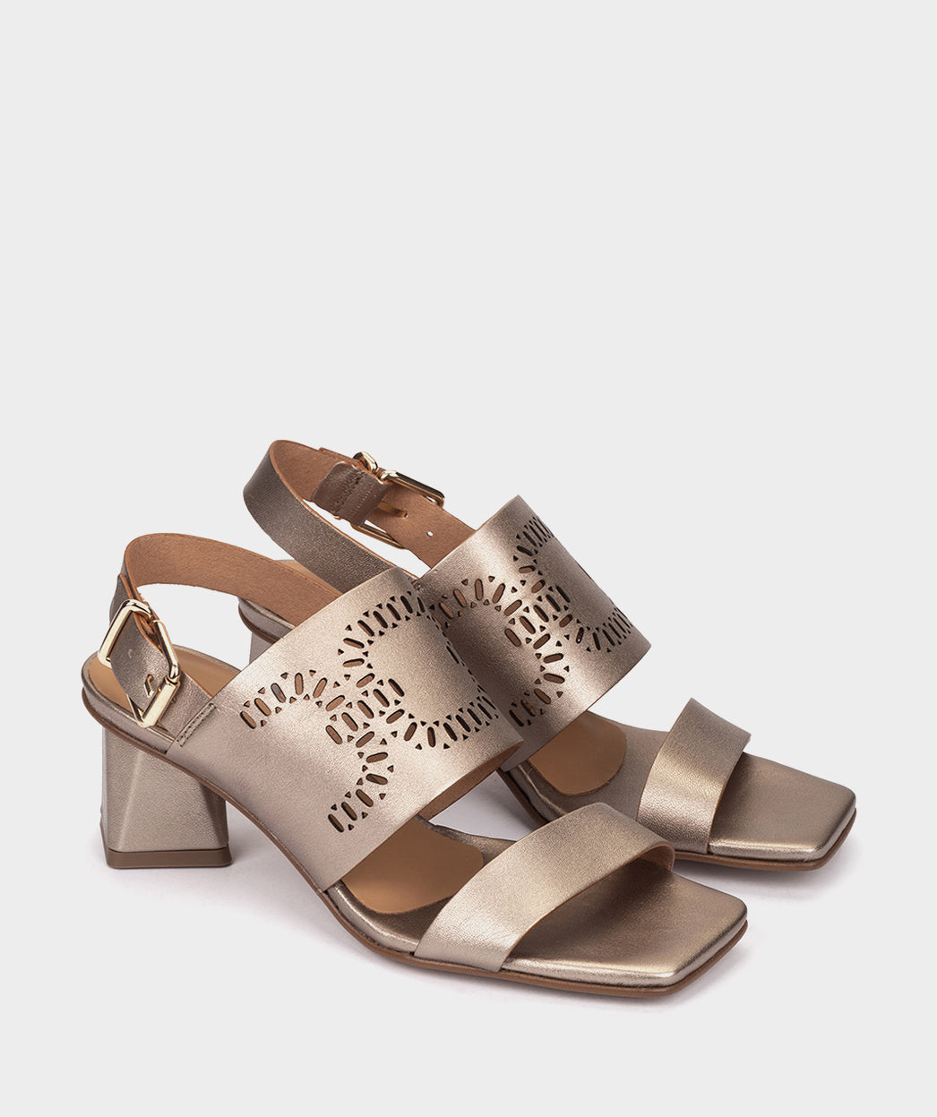 Sandalias de tacón de piel en color humo. La original pala del modelo MANAROLA te cautivarán desde el momento en el que la veas. Una opción perfecta si buscas un modelo especial para tus looks de primavera-verano.