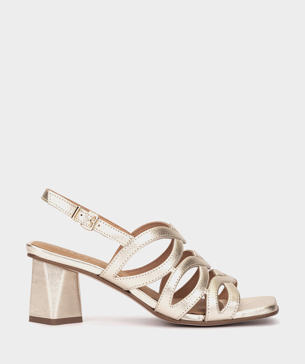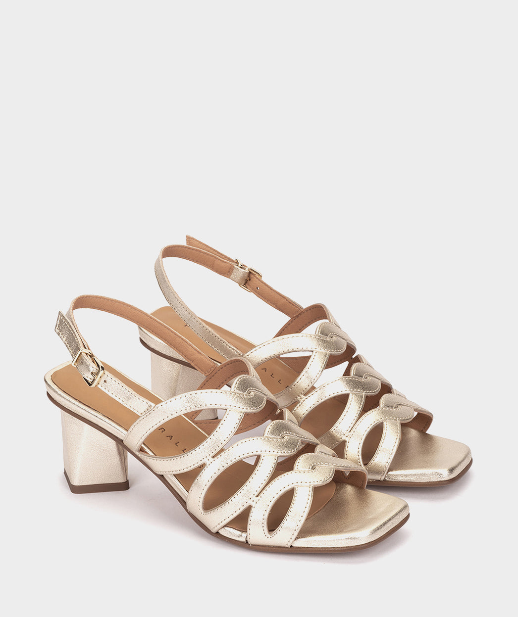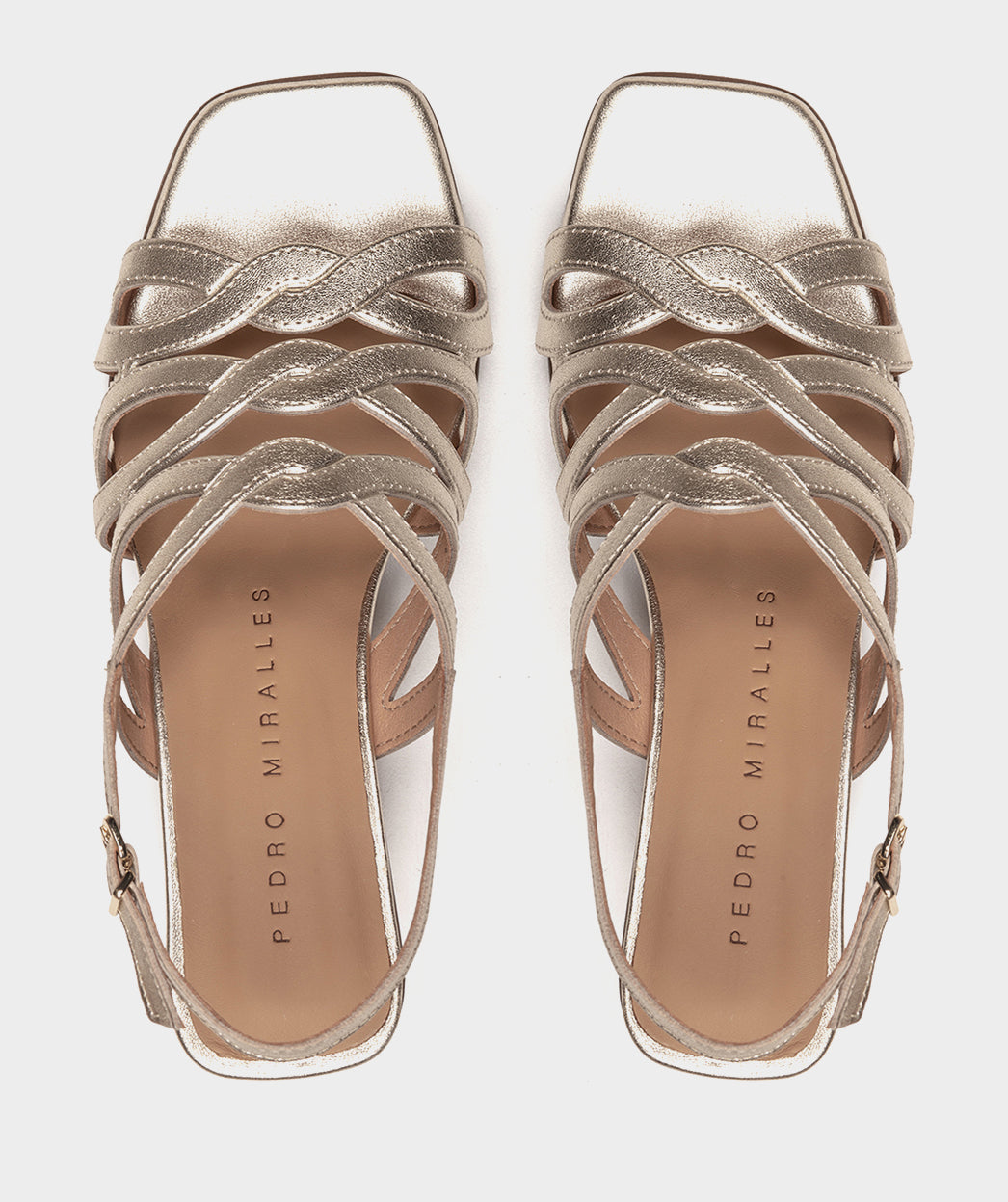 Sandalias de tacón de piel metalizada en color platino. Las sandalias Trento tienen un estilo único que envuelve el pie de una forma muy elegante. Confeccionadas con un tacón midi con diseño geométrico. Estas sandalias son la combinación perfecta entre comodidad y estilo.