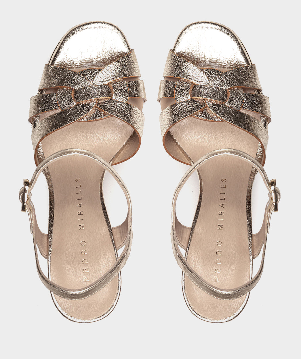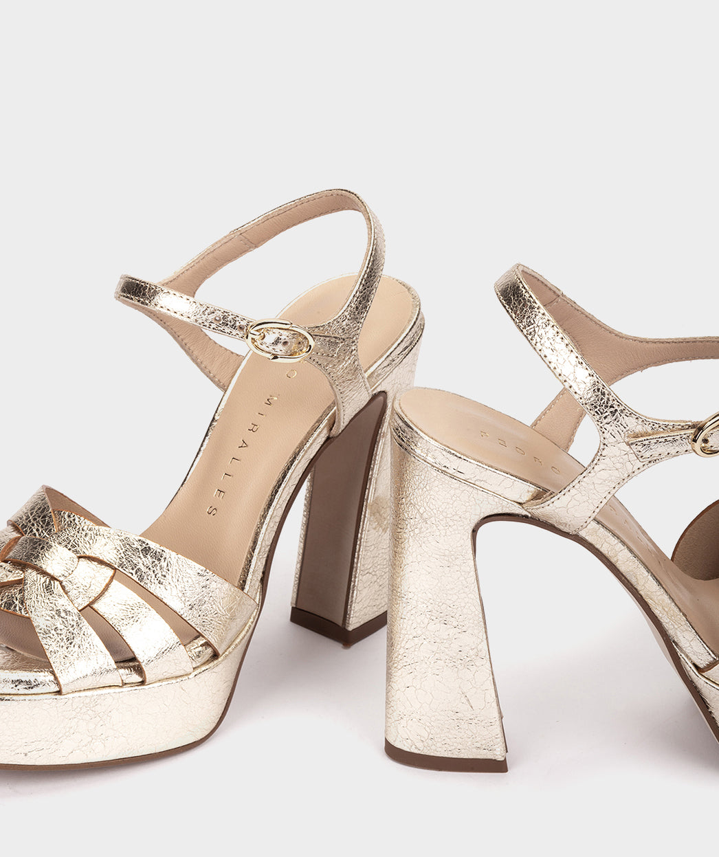 Sandalias de tacón de piel metalizada efecto arrugado en color platino. Confeccionadas con un tacón alto grueso y atrevido para ser más cómodas de lo que imaginas, especialmente al combinarse con la plataforma. Las sandalias Roskilde conseguirán que deslumbres en tu próximo evento u ocasión especial.
