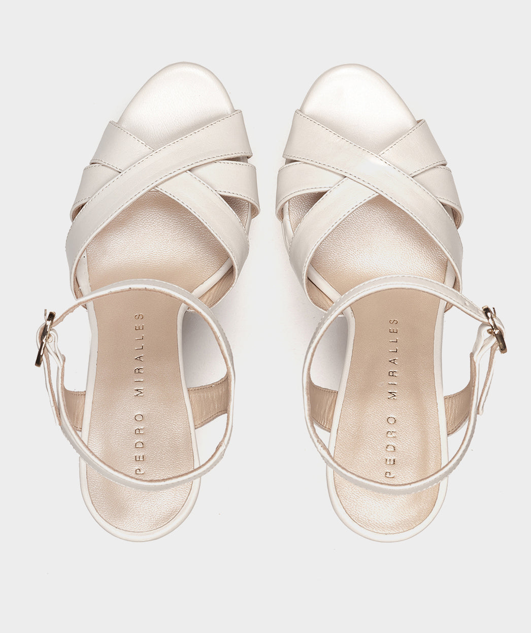 Sandalias de tacón de piel en color blanco perla. Confeccionadas con un tacón bloque alto y atrevido para ser más cómodas de lo que imaginas, especialmente al combinarse con la plataforma. Cada detalle de las sandalias Zarautz evoca la esencia de los 70, donde la moda era audaz, libre y llena de vitalidad.