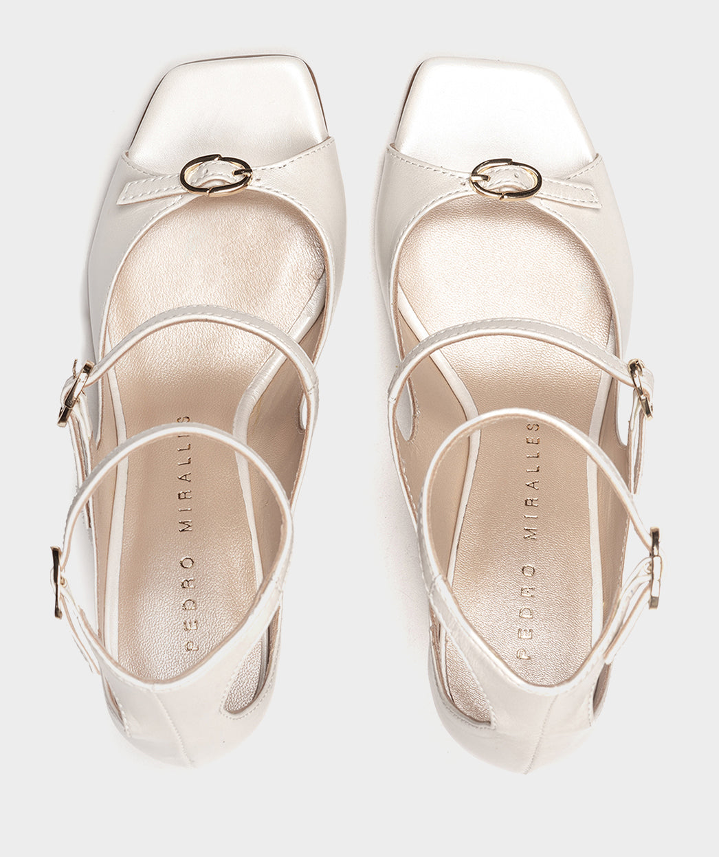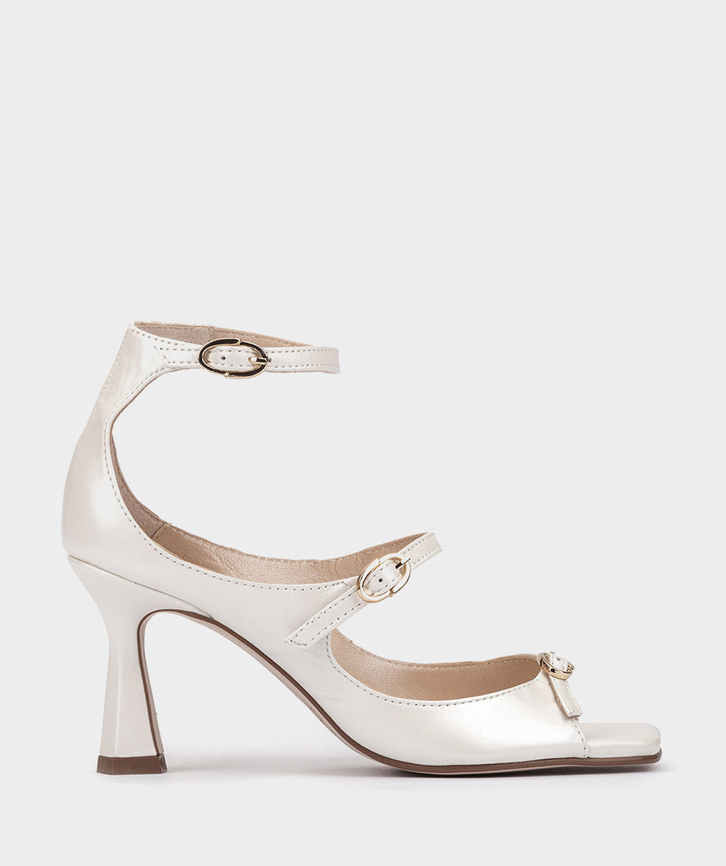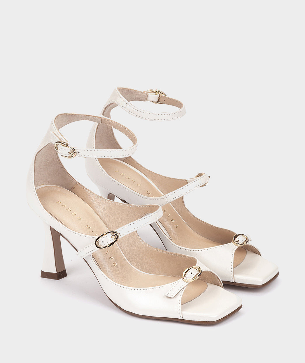 Sandalias de tacón de piel en color blanco. El original diseño del modelo MAYFAIR destaca por su silueta con hebillas. Atrévete a lucir estas originales sandalias.