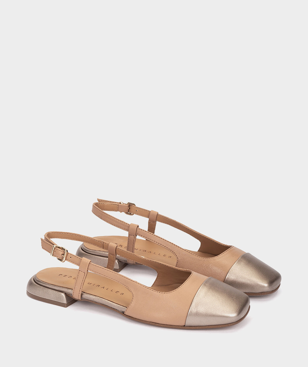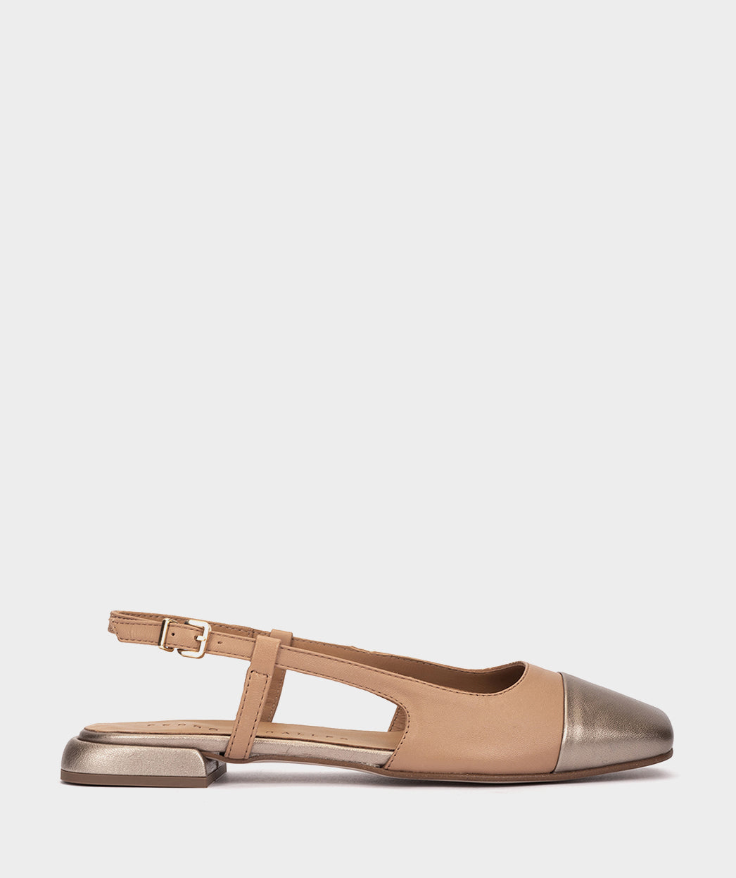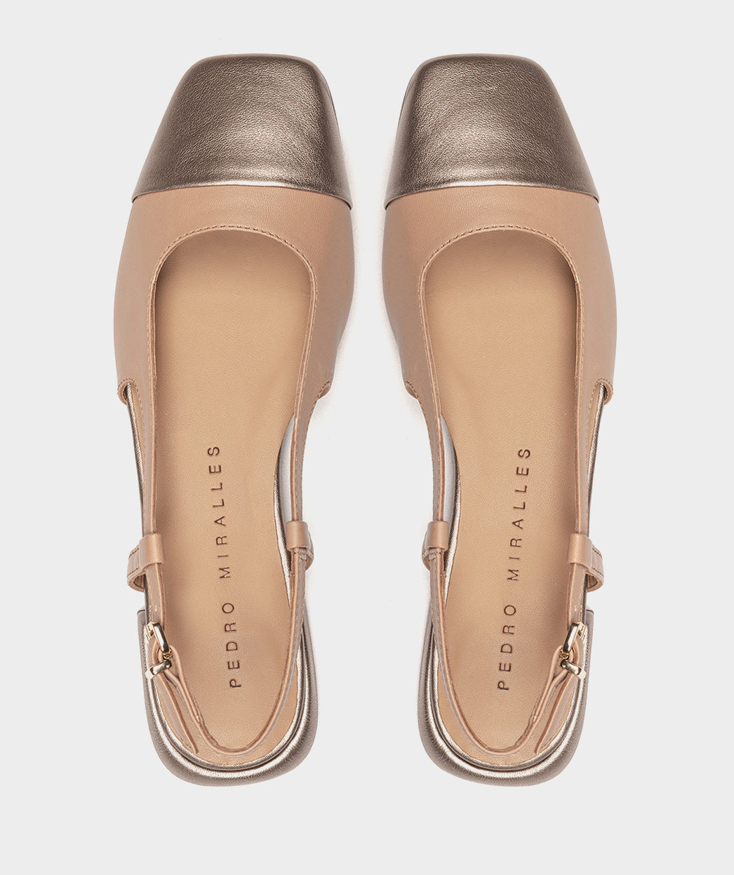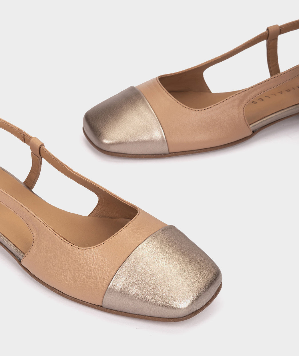 Bailarinas destalonadas en color camel. Se han fabricado con una piel suave que se combina en diferentes tonos para conseguir el contraste perfecto. Estos zapatos conseguirán un ajuste cómodo para llevar durante todo el día.