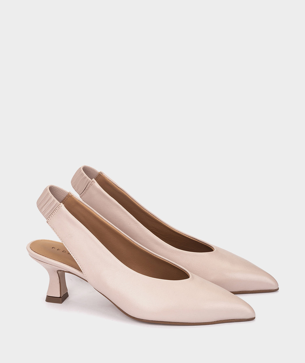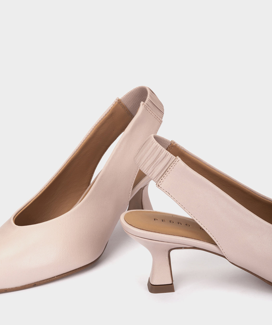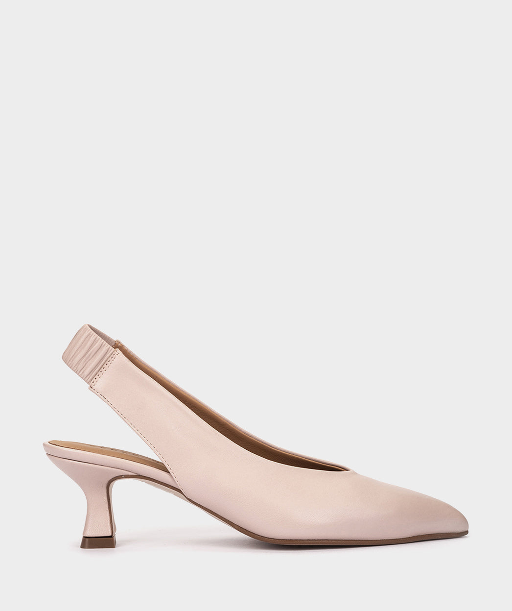 Zapatos de tacón midi de piel en color rosa palo. El modelo Mandalay es un modelo clásico, perfecto para cualquier evento. Te enamorarás de su tacto suave y su tacón cómodo.