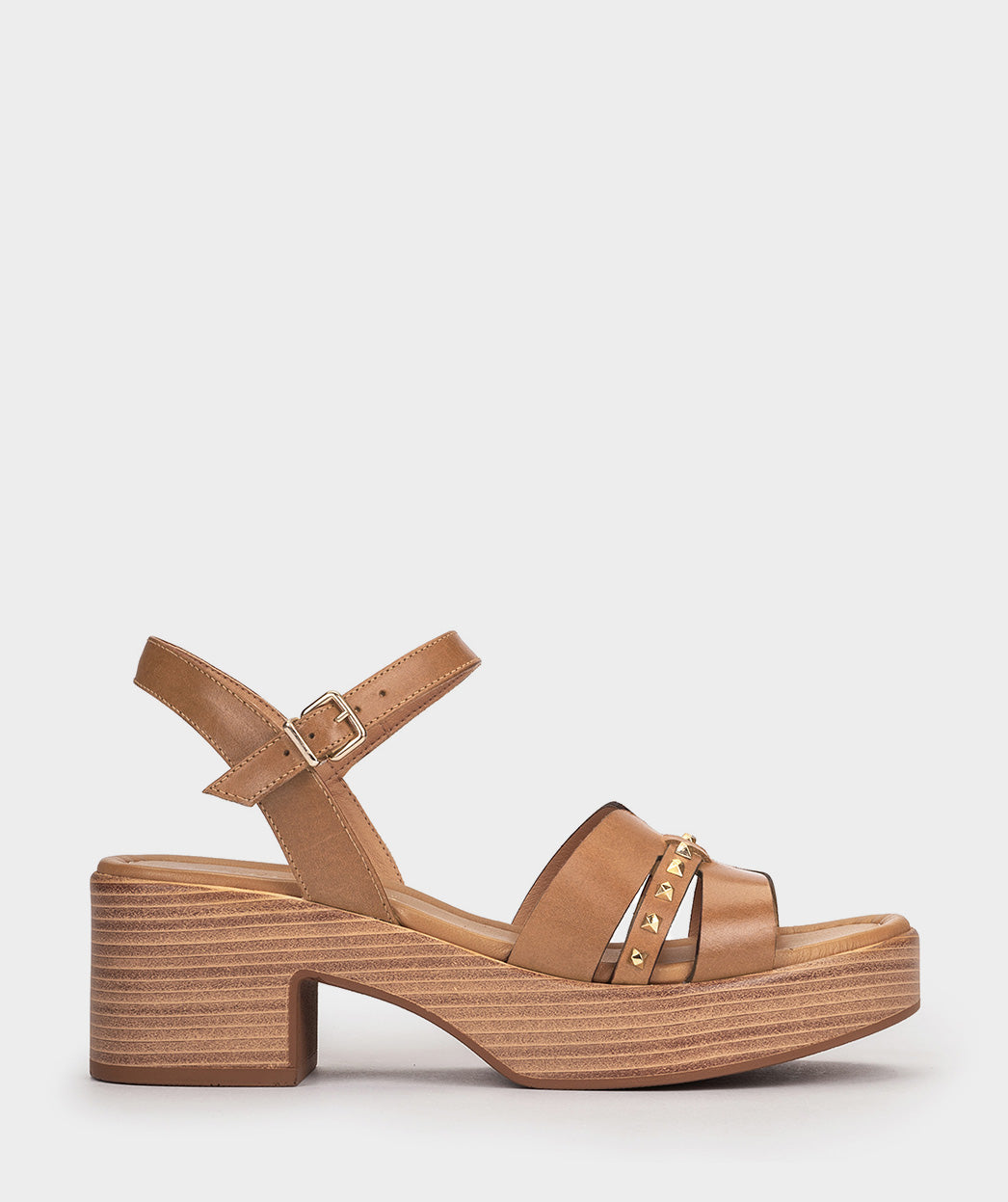 Sandalias de piel en color marrón. Este modelo se convertirá en uno de tus favoritos para lucir esta temporada de primavera-verano. La combinación de las tachuelas le aporta gran personalidad, lo que convertirá a esta sandalia en única. El modelo NEILA no puede faltarte este verano.