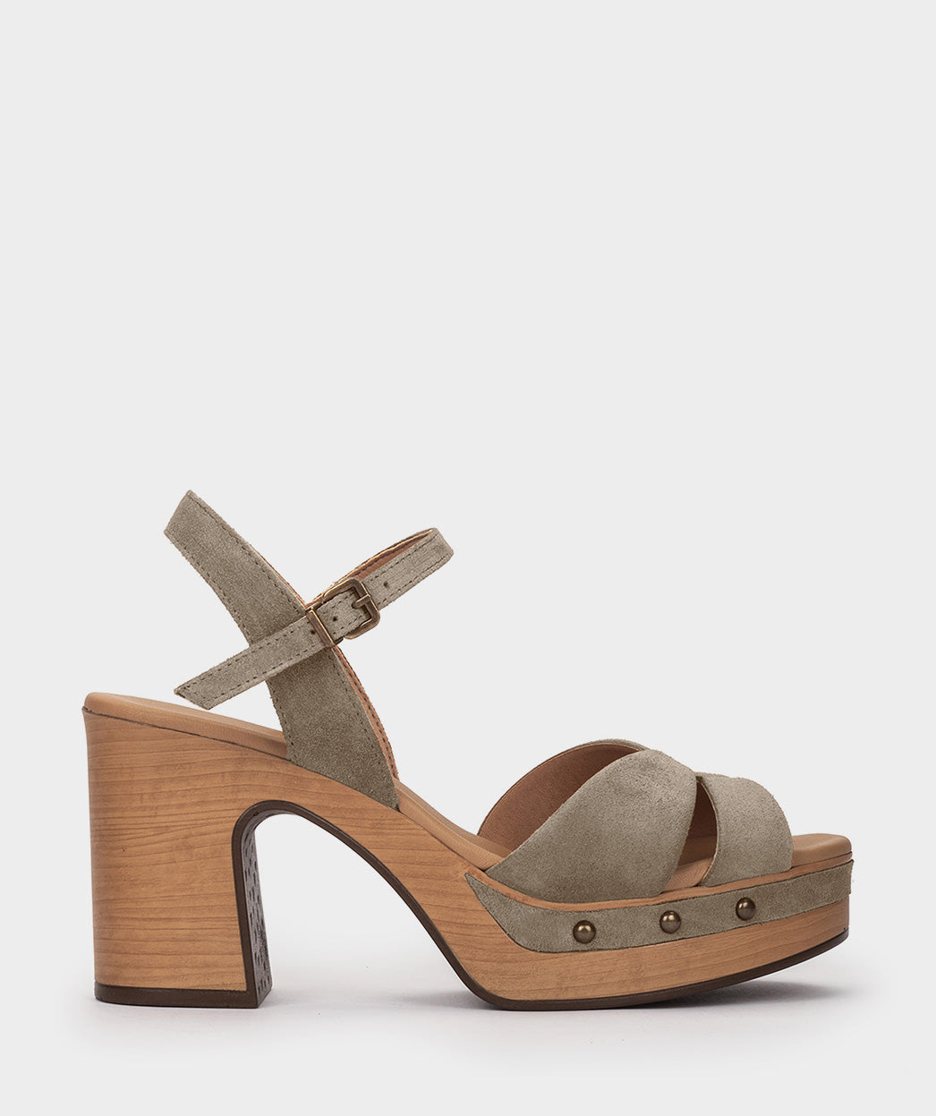 Sandalias de tacón de piel en color verde. Ideales para lucir cómoda sin perder el estilo. Estas sandalias se convertirán en el elemento básico de tu armario de verano.