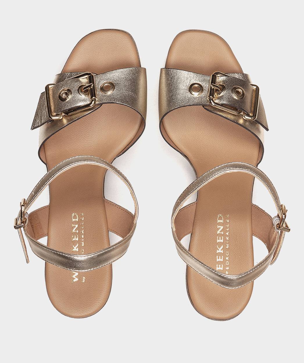 Sandalias de tacón de piel metalizada en color platino. El modelo RUCANDIO apuesta por un diseño original y lleno de personalidad. Unas sandalias con personalidad propia con las que lucirás perfecta cualquier look.