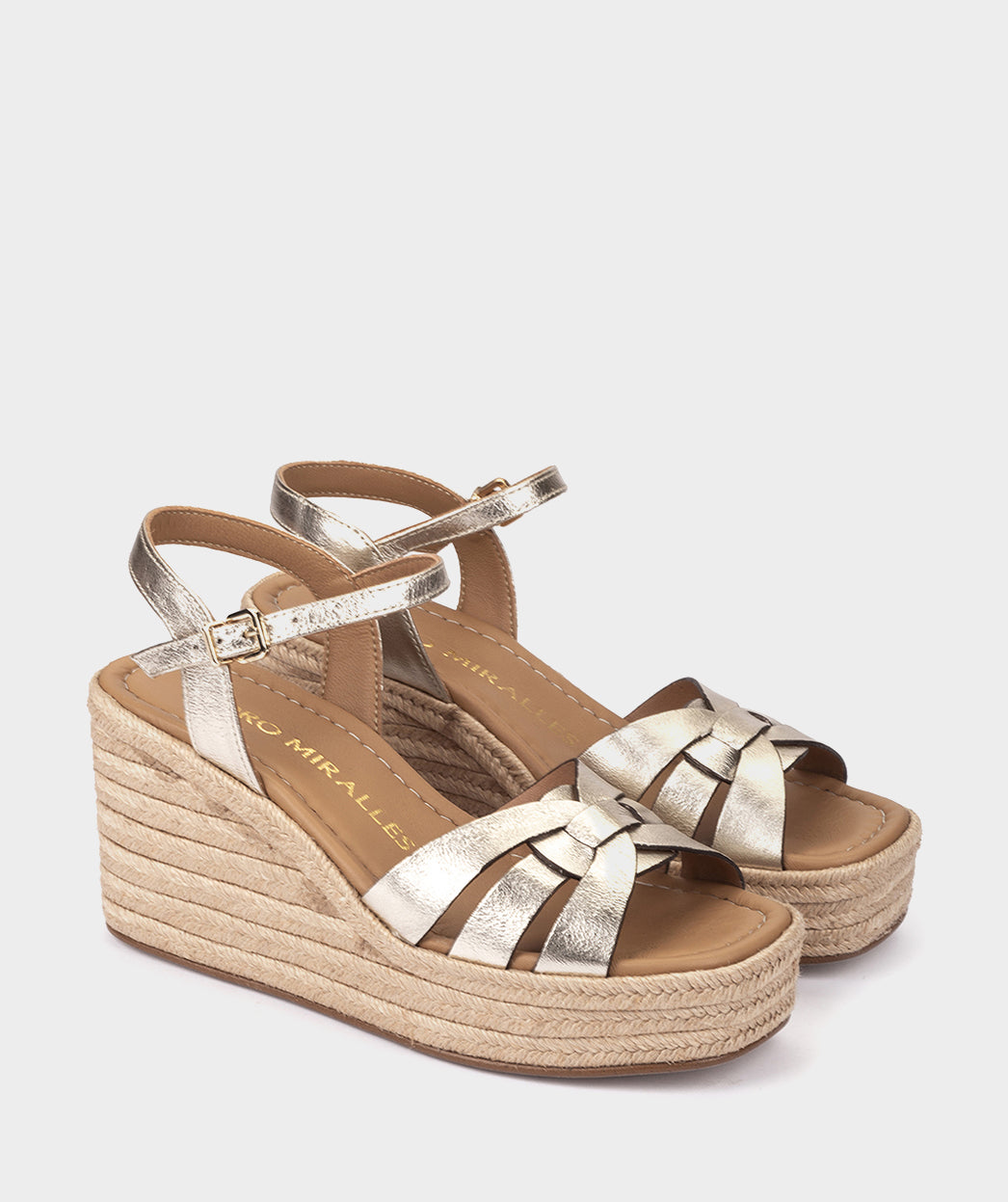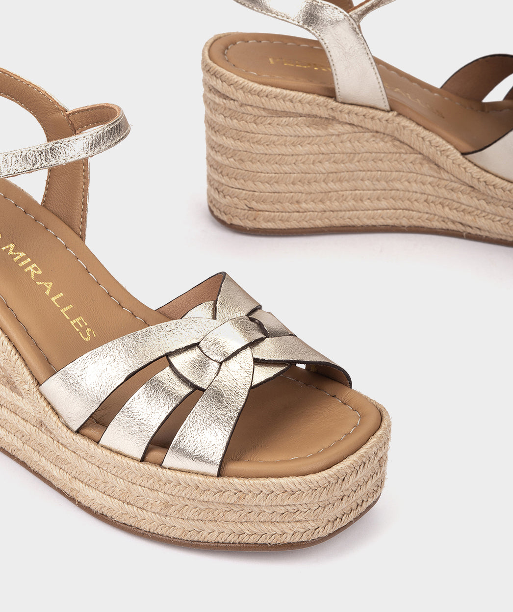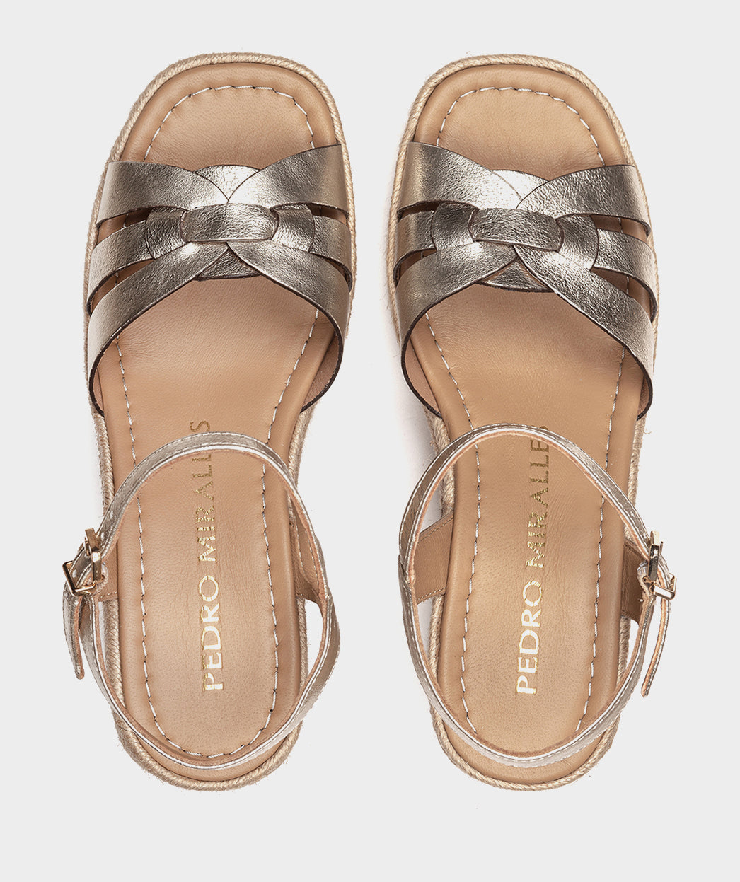 Cuñas de piel metalizadas.Luce con estilo propio estas alpargatas que destacan por su sofisticación y comodidad. En cuanto las pruebes no querrás quitártelas, ¡son ideales!.