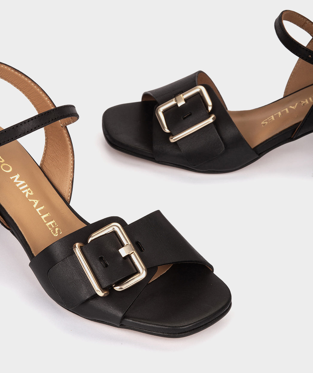Sandalias de tacón fabricadas en piel de color negro. Con esta sandalia experimentarás la máxima comodiad al mismo tiempo que estilizas tus looks. Encuentra el equilibrio perfecto entre confort y sofitsticación con el modelo FAURA.