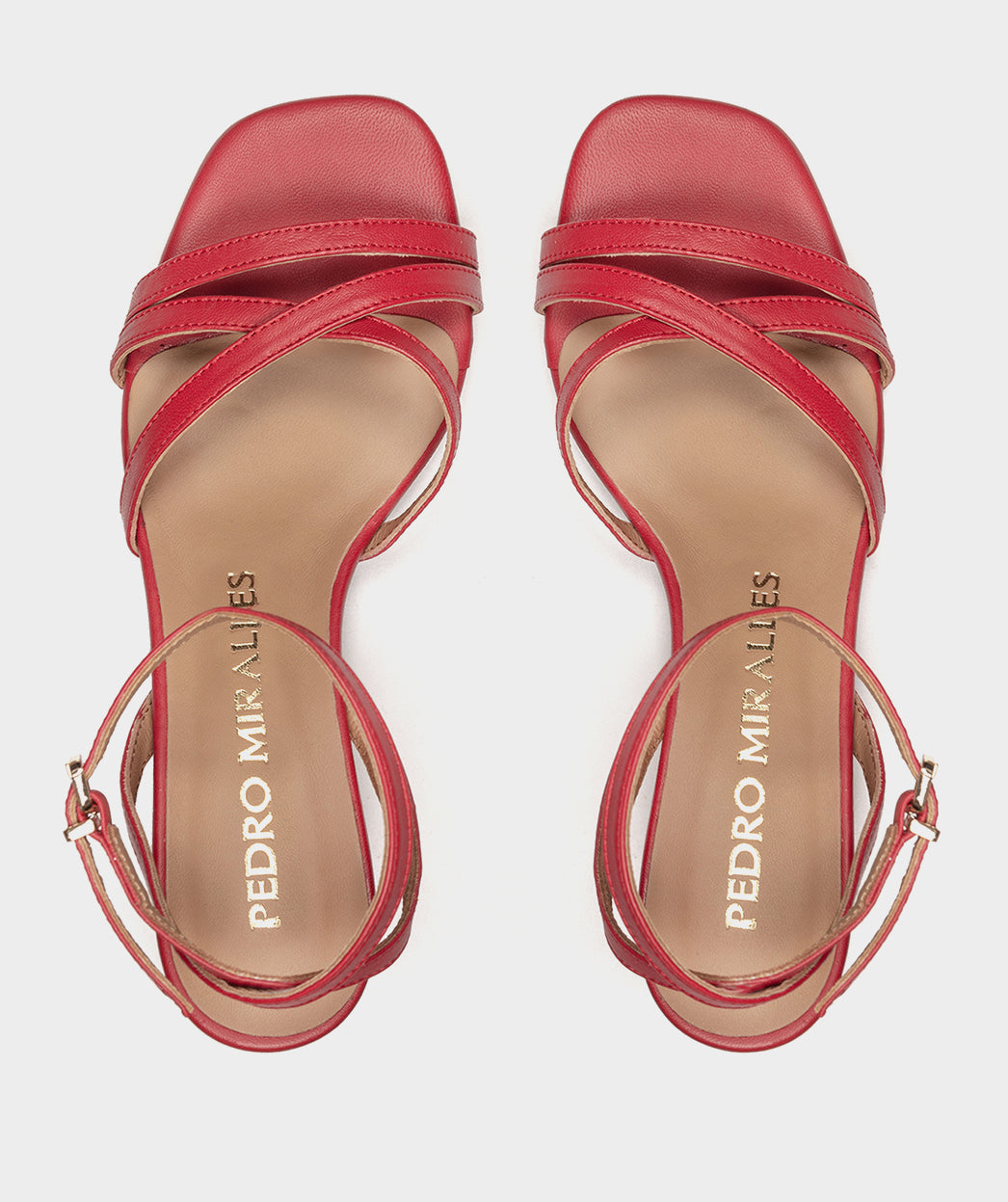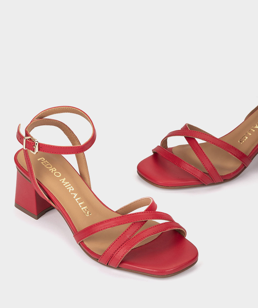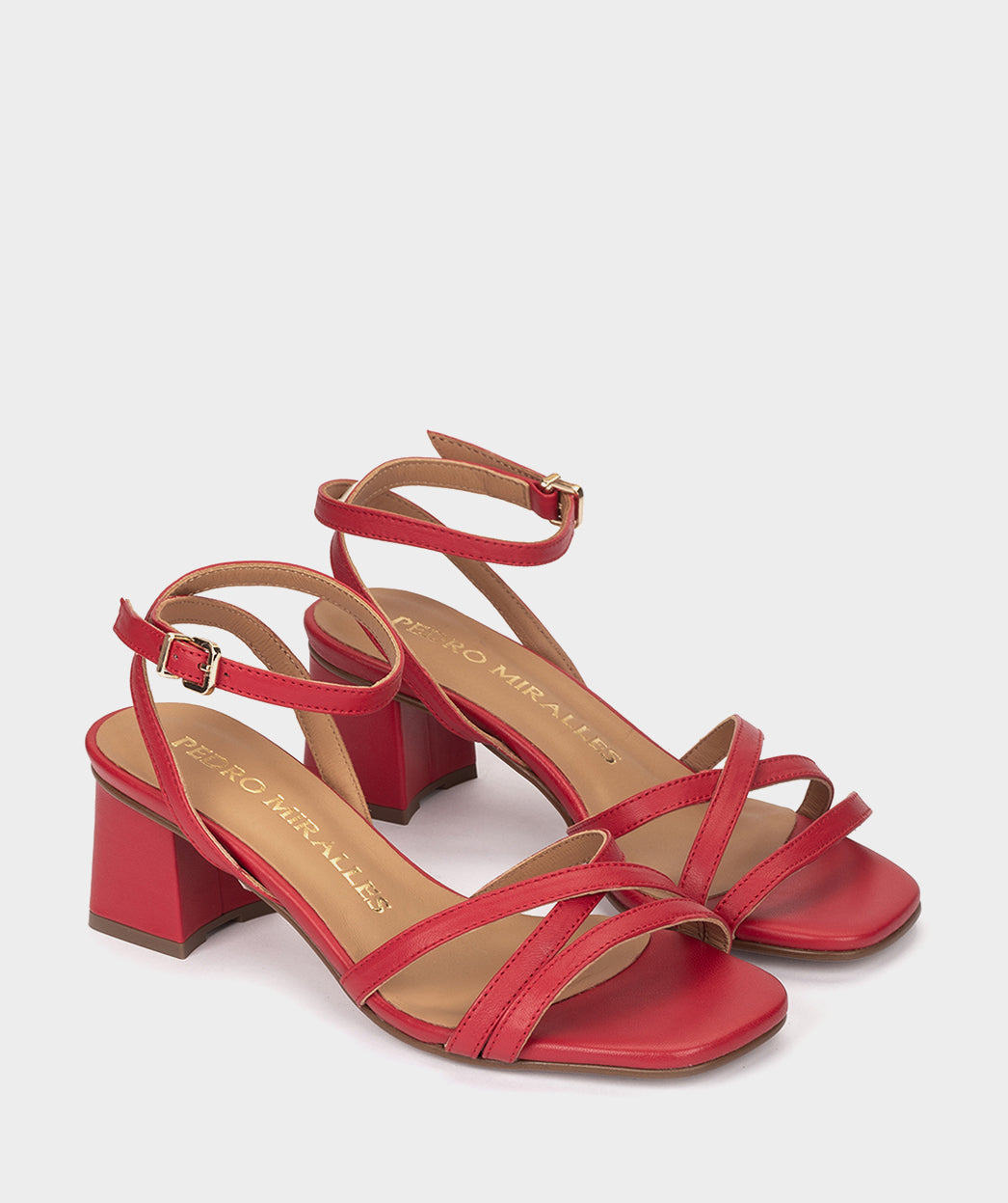 Sandalias de tacón fabricadas en piel de color rojo.MARINES nace como las sandalias más versátiles de la temporada. La altura de su tacón es perfecta para lucirlo durante todo el día cómodamente. Un modelo pensado para lucir en eventos y a diario, la versatilidad es su principal característica.