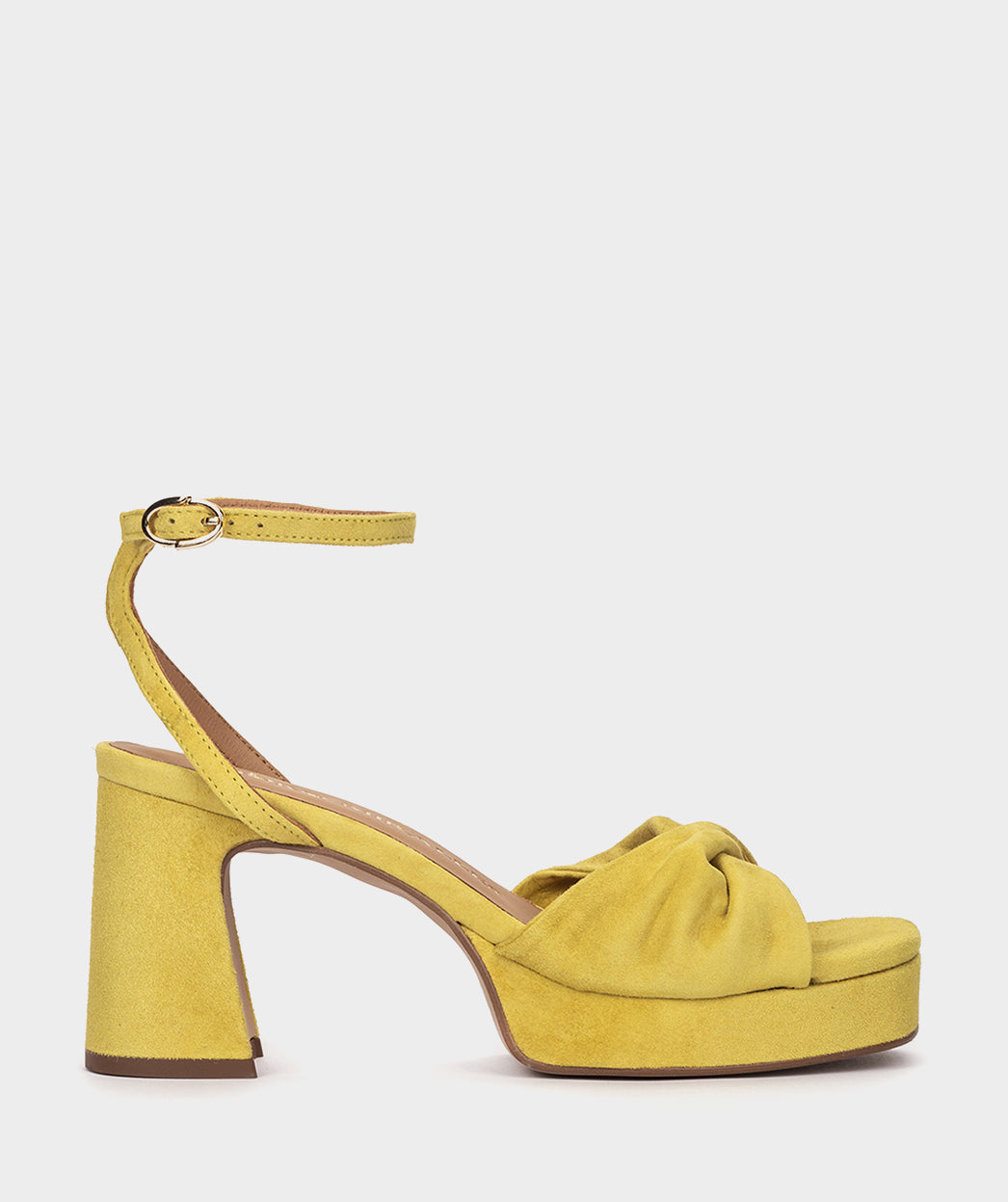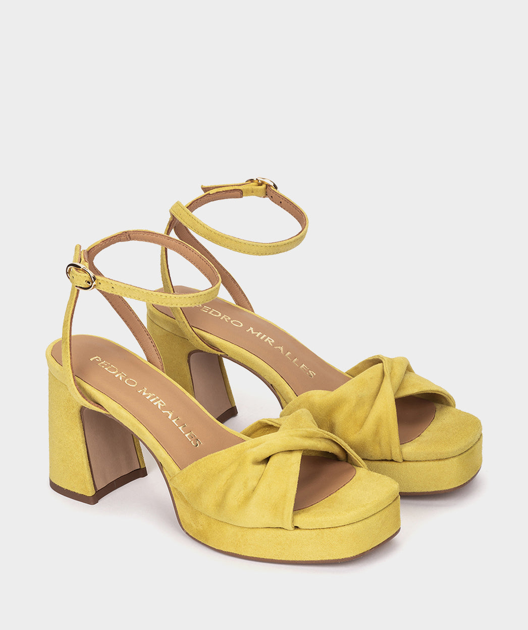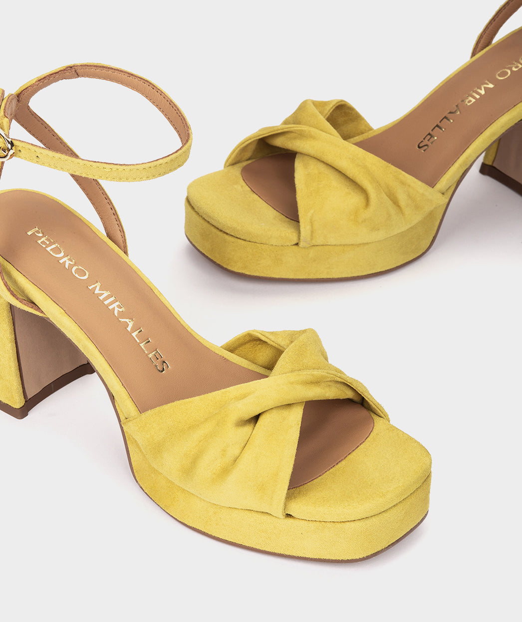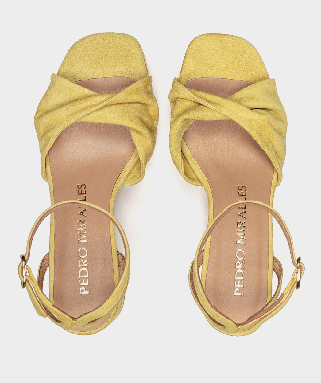 Sandalias de tacón de ante en color lima. Estas sandalias combinan estilo y comodidad para que puedas llevarlas todo el día sin cansarte. No esperes más y luce las sandalias Tavira.