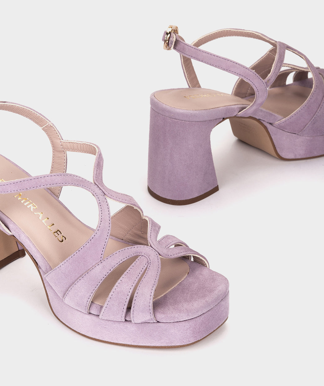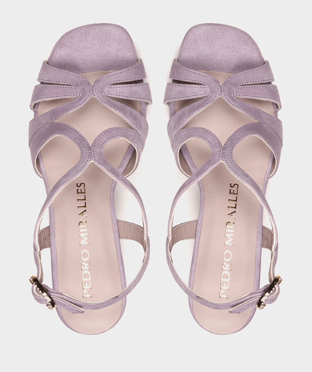 Sandalias de tacón de ante en color malva.La versión del modelo MALAWI apta para quienes buscan un tacón más bajo. MANAUS es el modelo perfecto para lucir en eventos y ocasiones especiales.