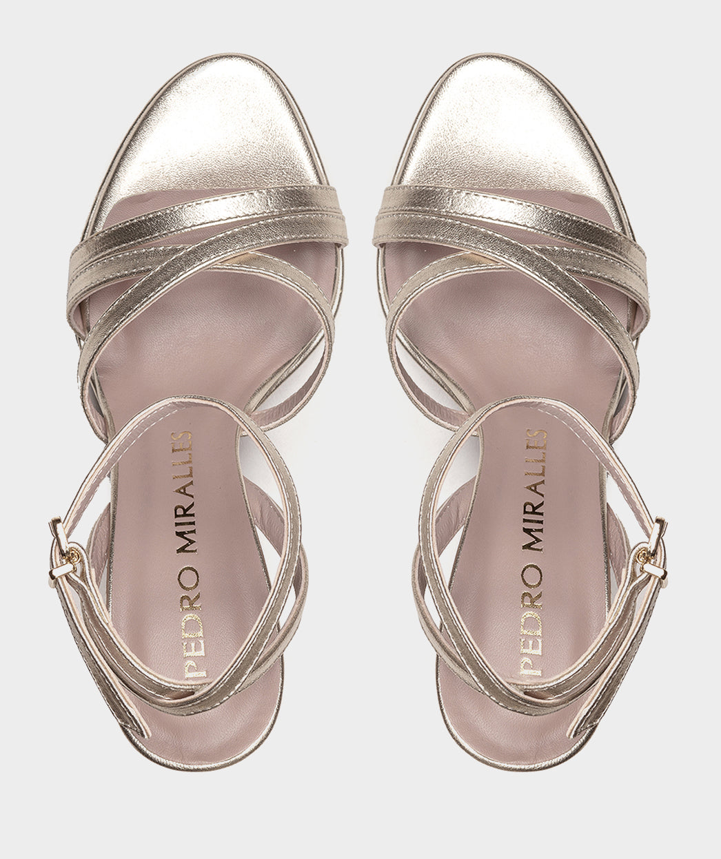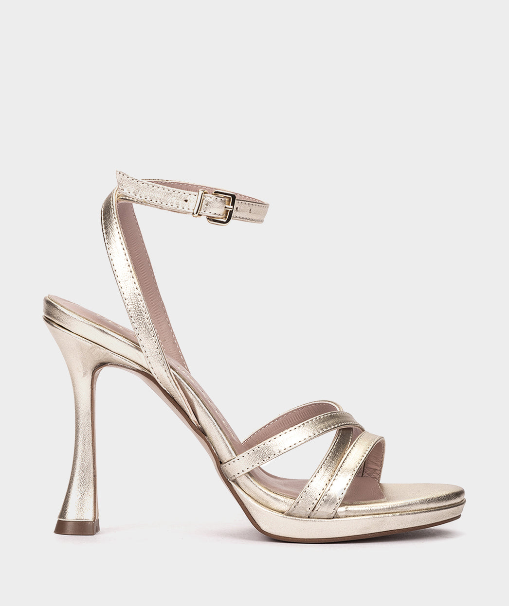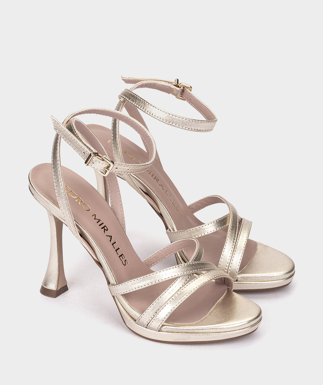 Sandalias de tacón de piel metalizada de color platino. Su diseño elegante y las finas tiras harán que tus looks se vean totalmente estilizados aportando una gran personalidad. Conviertete en la más elegante con este modelo único.