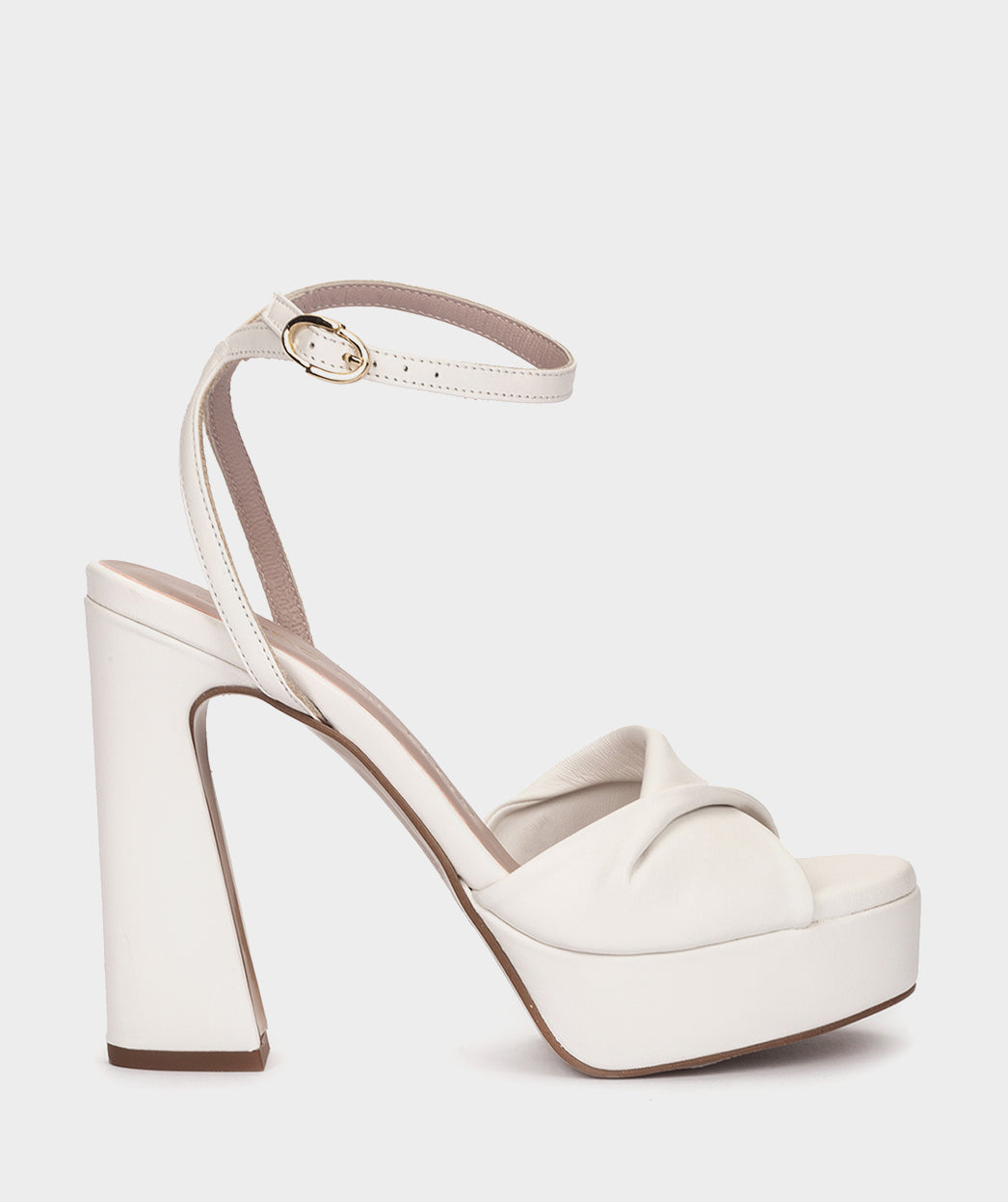 Sandalias de tacón frabicadas en piel de color blanco. Las sandalias SABUGO combinan estilo y comodidad para que puedas llevarlas durante tus eventos. Elige las sandalias que son una apuesta segura.