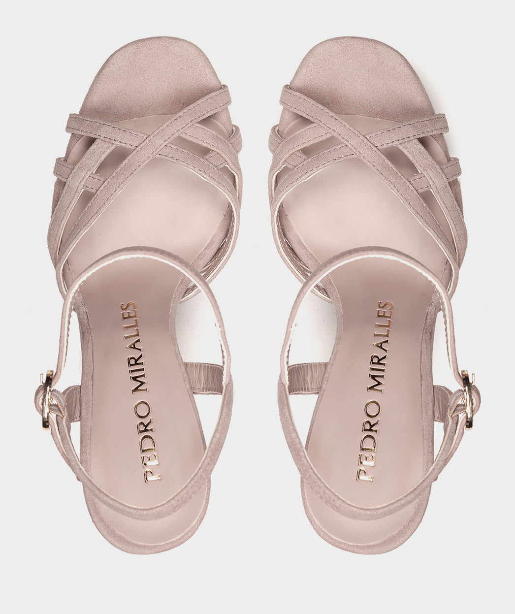 Sandalias de tacón fabricadas en ante de color rosa palo. Este modelo destaca por su elegante diseño. Si buscas una sandalia con personalidad propia, sin duda CERBI se convertirá en tu aliado favorito de esta nueva temporada.