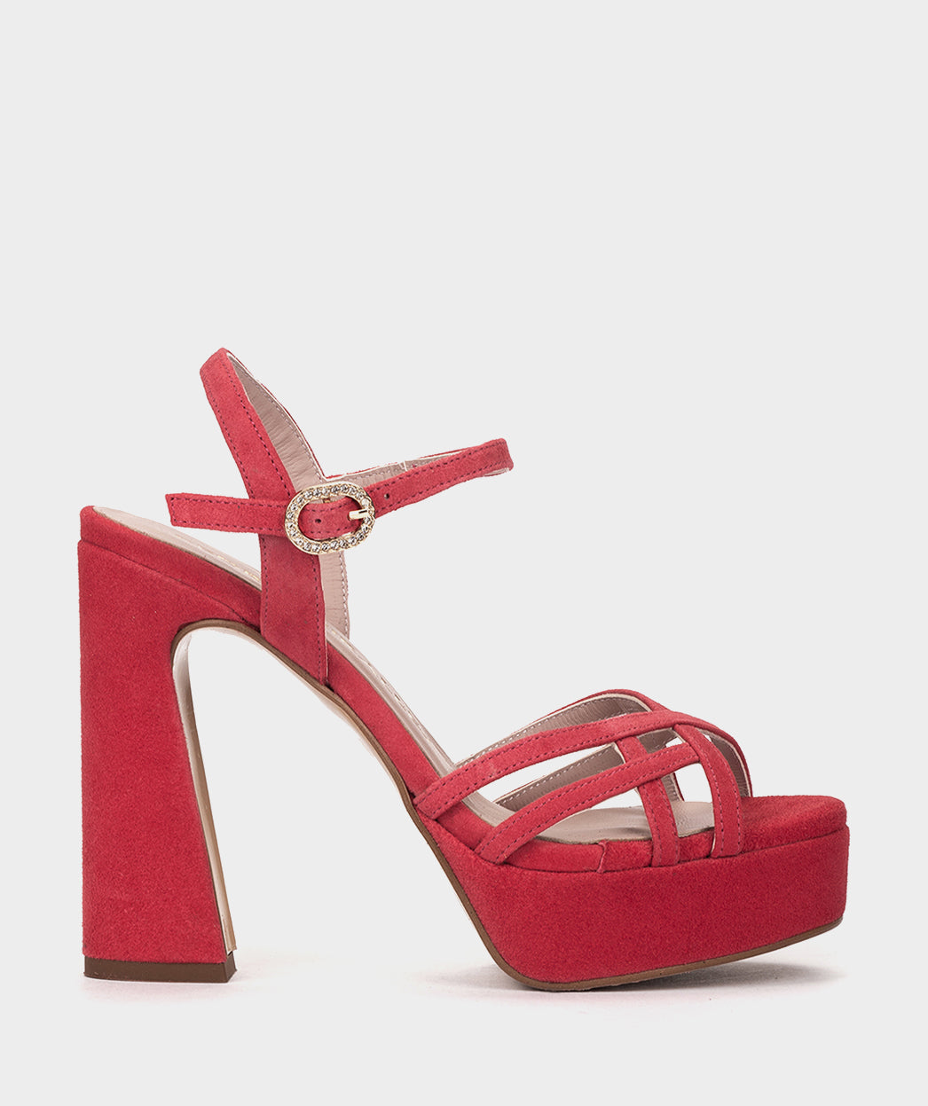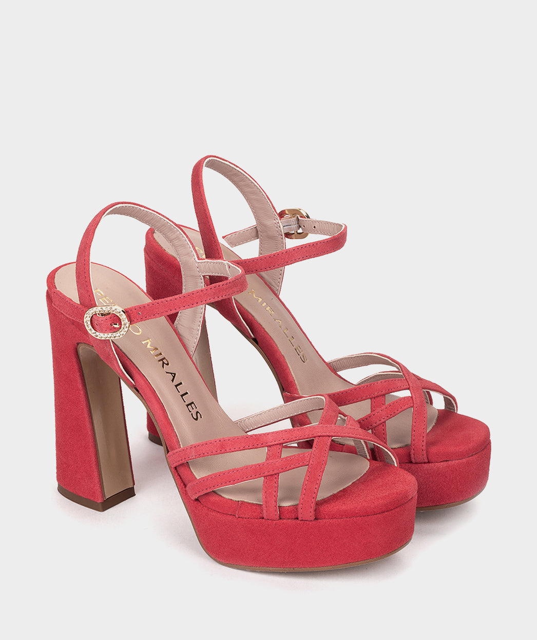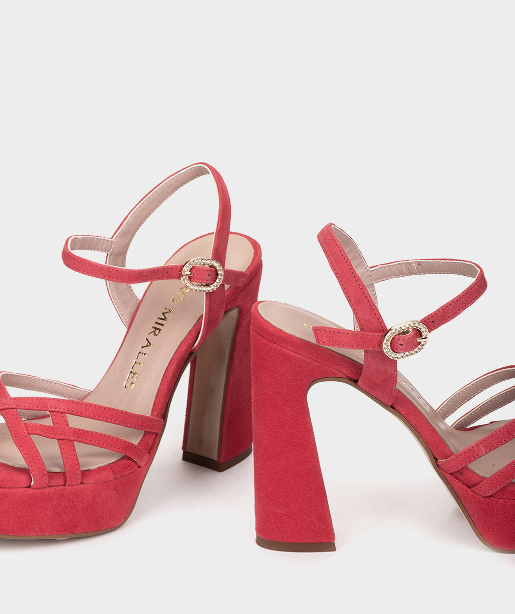 Sandalias de tacón fabricadas en ante de color rojo. Este modelo destaca por su elegante diseño. Si buscas una sandalia con personalidad propia, sin duda CERBI se convertirá en tu aliado favorito de esta nueva temporada.