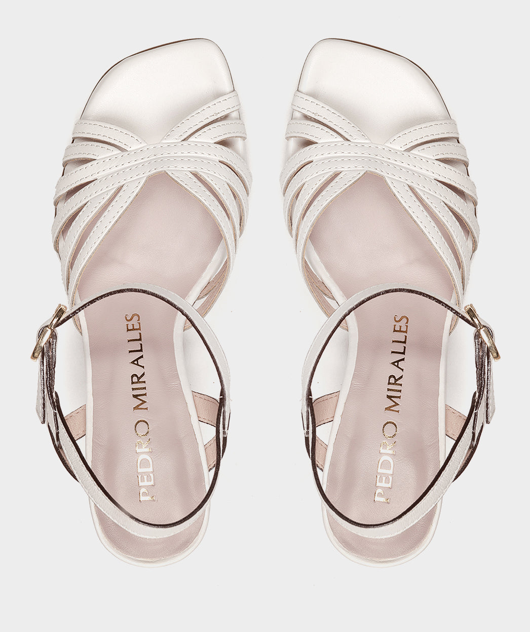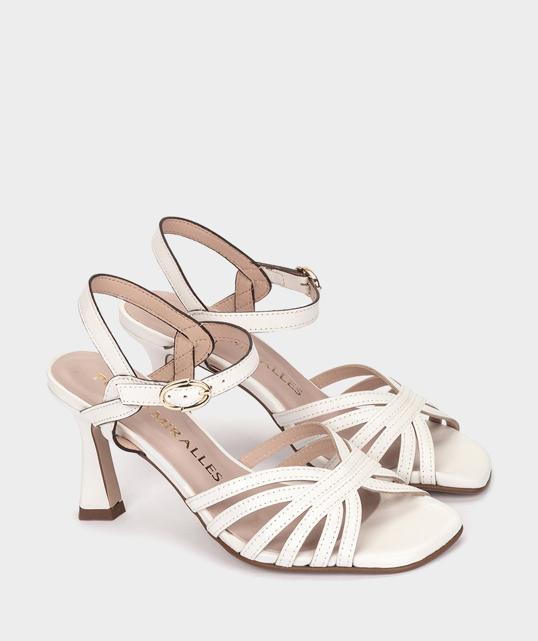 Sandalias de tacon de piel en color blanco. Un modelo original y elegante pensado para incorporar a todo tipo de looks gracias a la versatilidad que ofrece su diseño.