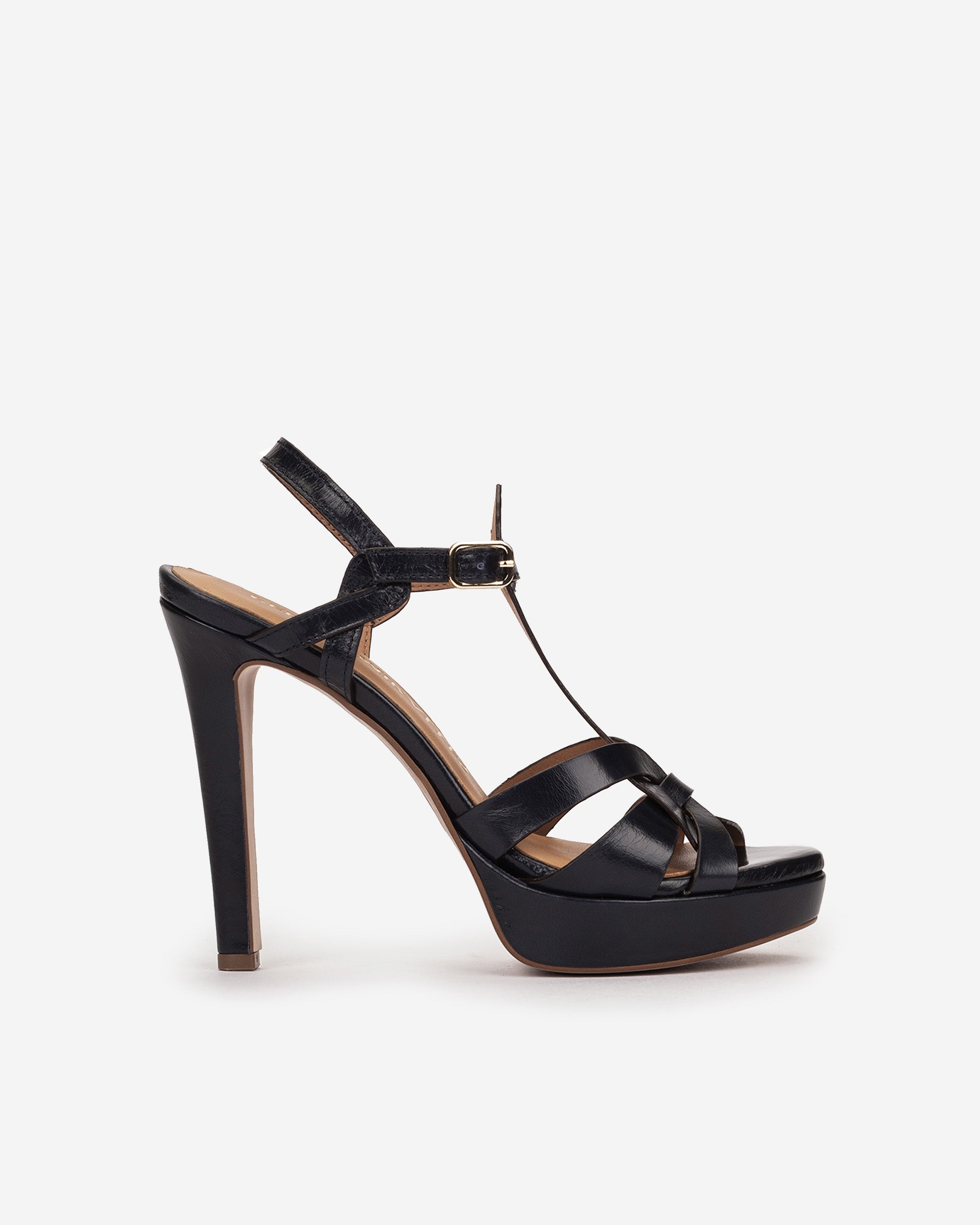 Sandalias de tacón de piel de color azul marino. Confeccionadas con un tacón alto y atrevido para ser más cómodas de lo que imaginas, especialmente al combinarse con la plataforma. Las sandalias Copenhague conseguirán que deslumbres con cualquier look.