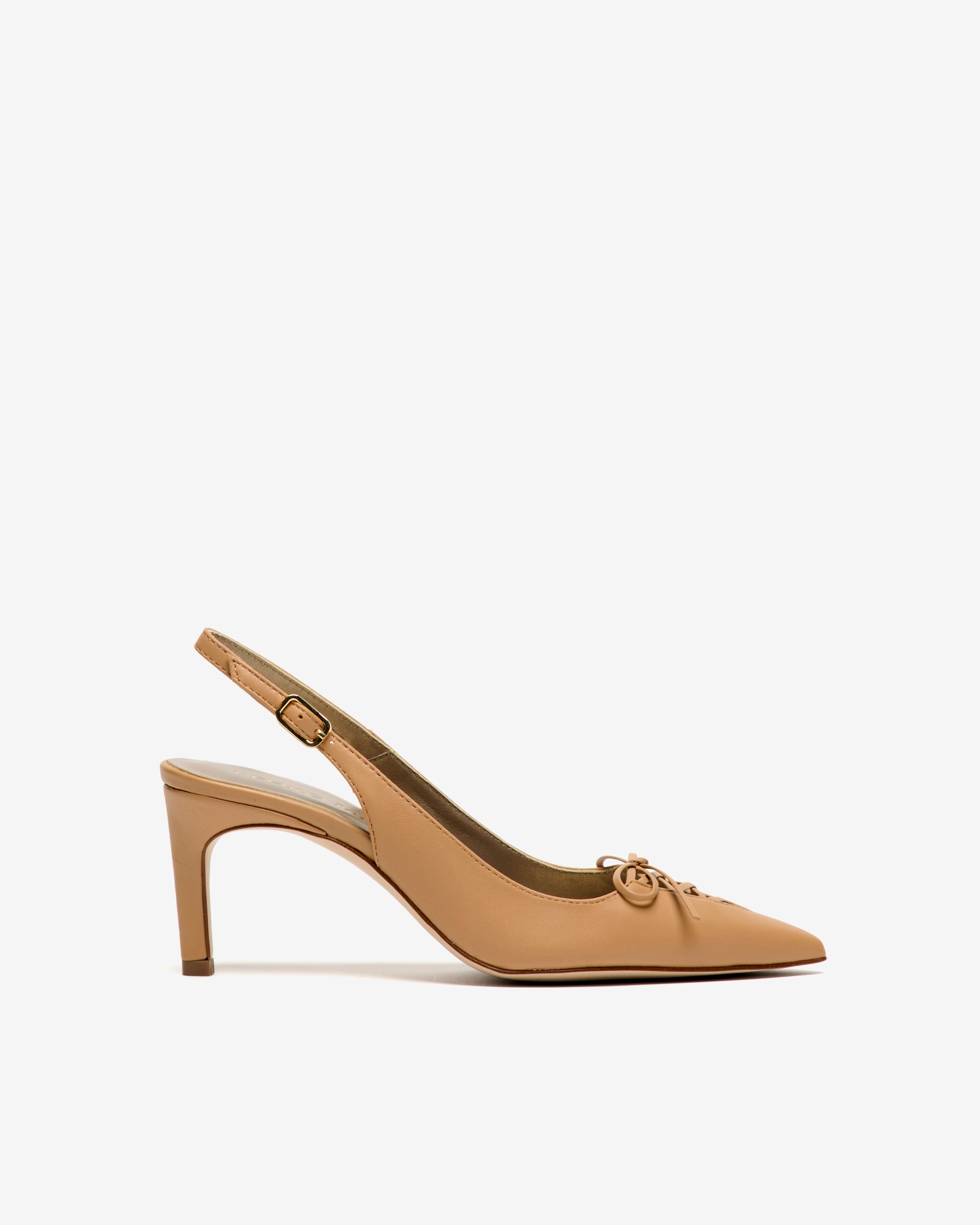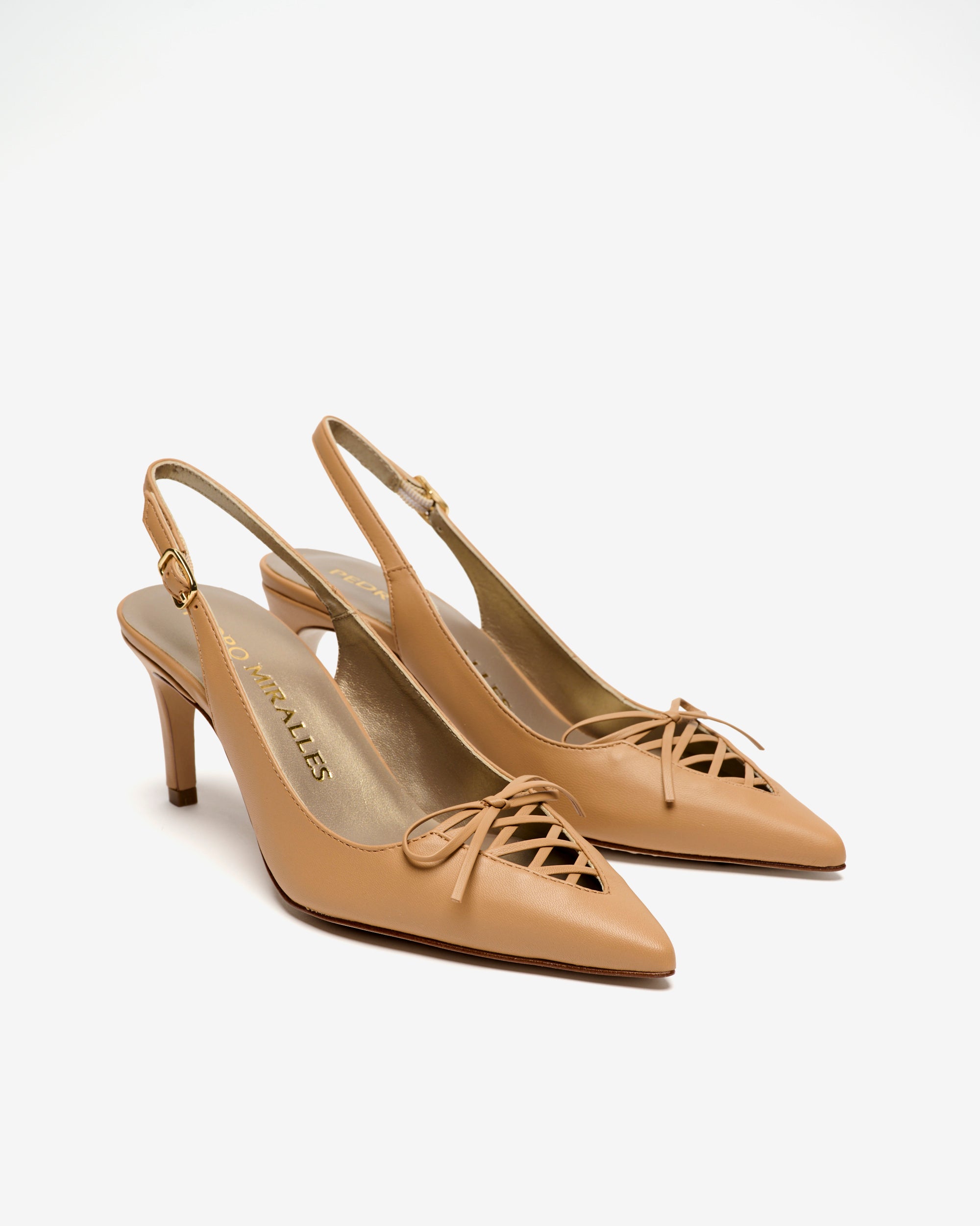 Zapatos destalonados de tacón de piel de color marrón. Un modelo que destaca por su escote con delicado lazo entrelazado que aporta un toque sofisticado y original. Diseño estilizado con puntera fina que realza la silueta del pie. Su tacón fino combina comodidad y elegancia para el día a día.