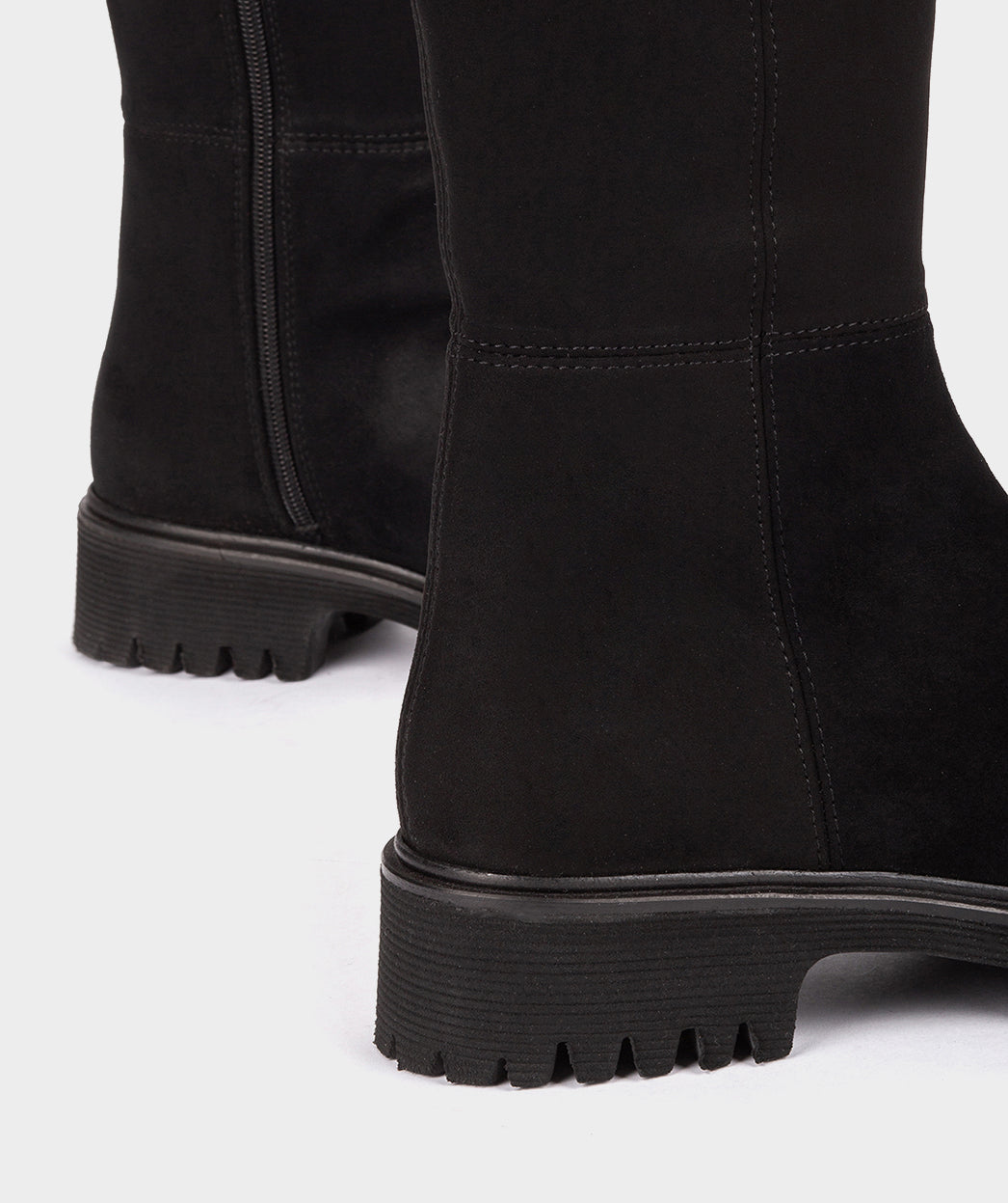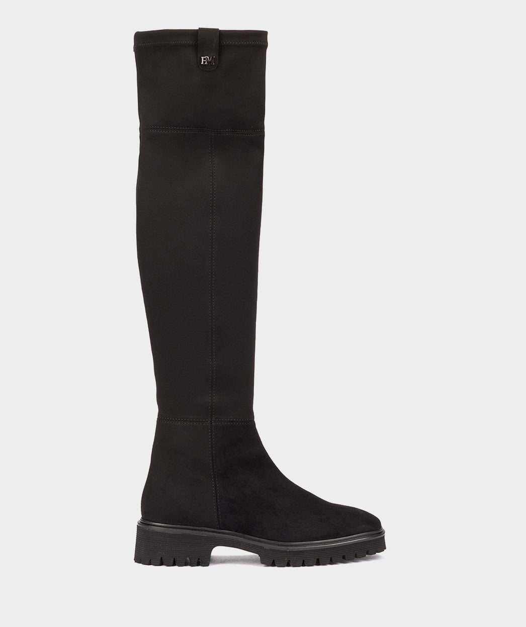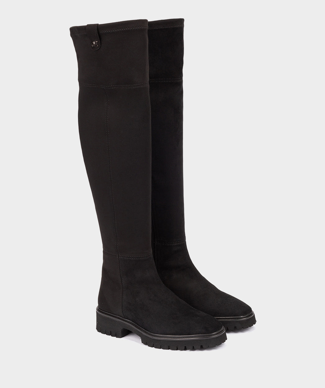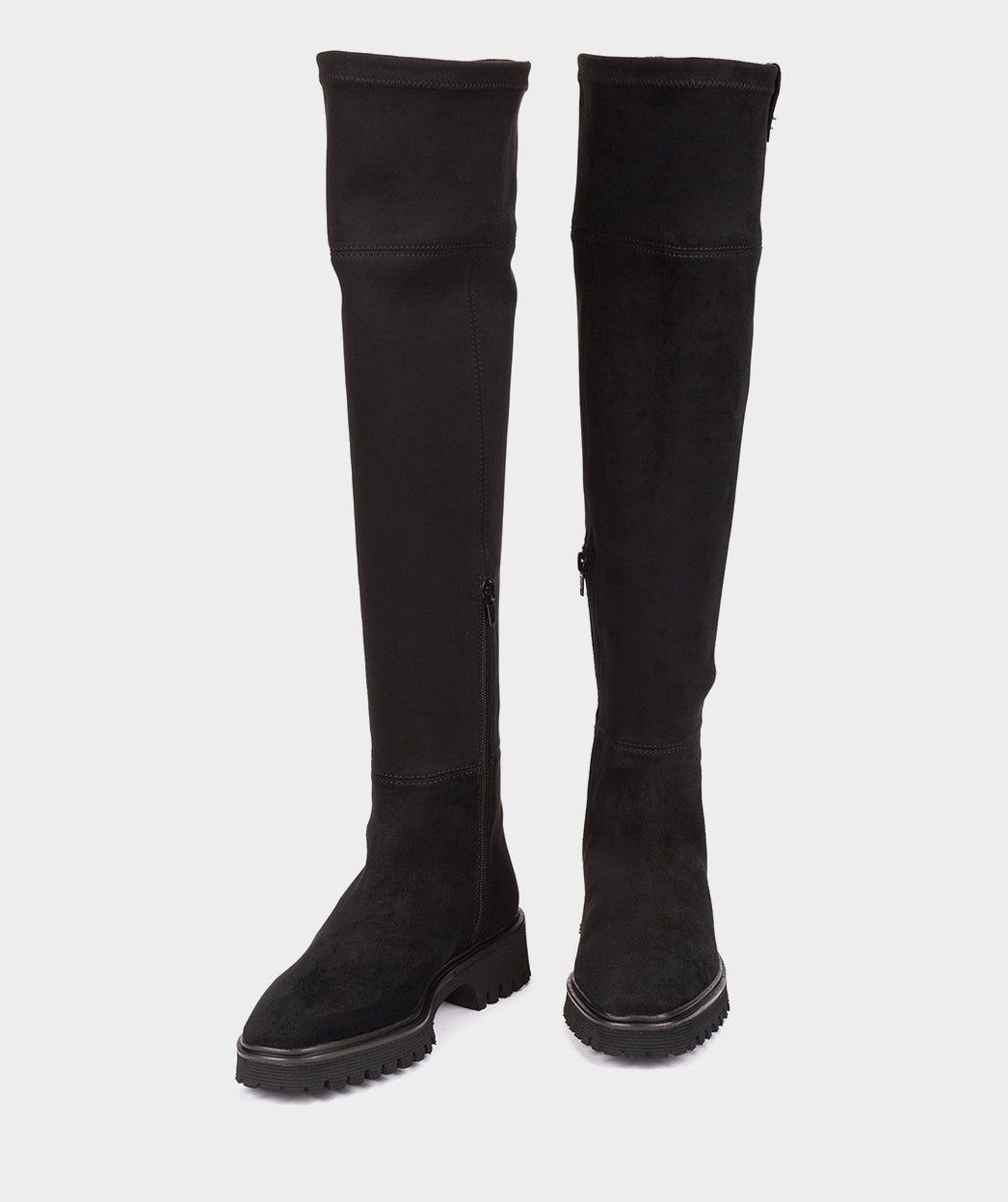 Botas de caña alta fabricadas en tejido elástico de color negro. Diseño de caña alta, con cierre de cremallera y elástico para una perfecta sujeción. El modelo VILNA cuenta con todos los elementos clave para convertirse en tu imprescindible de esta temporada.