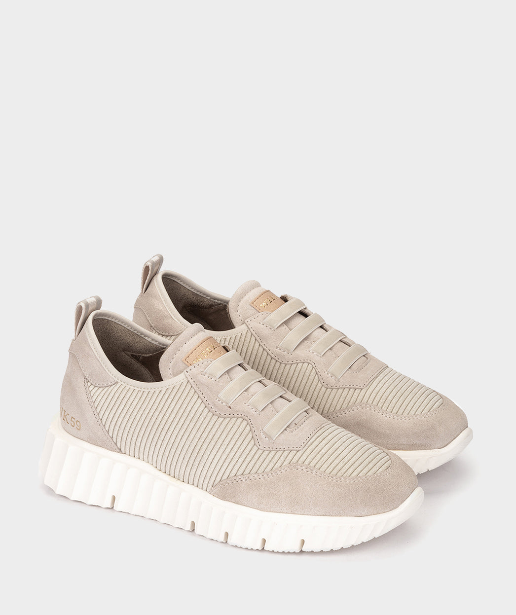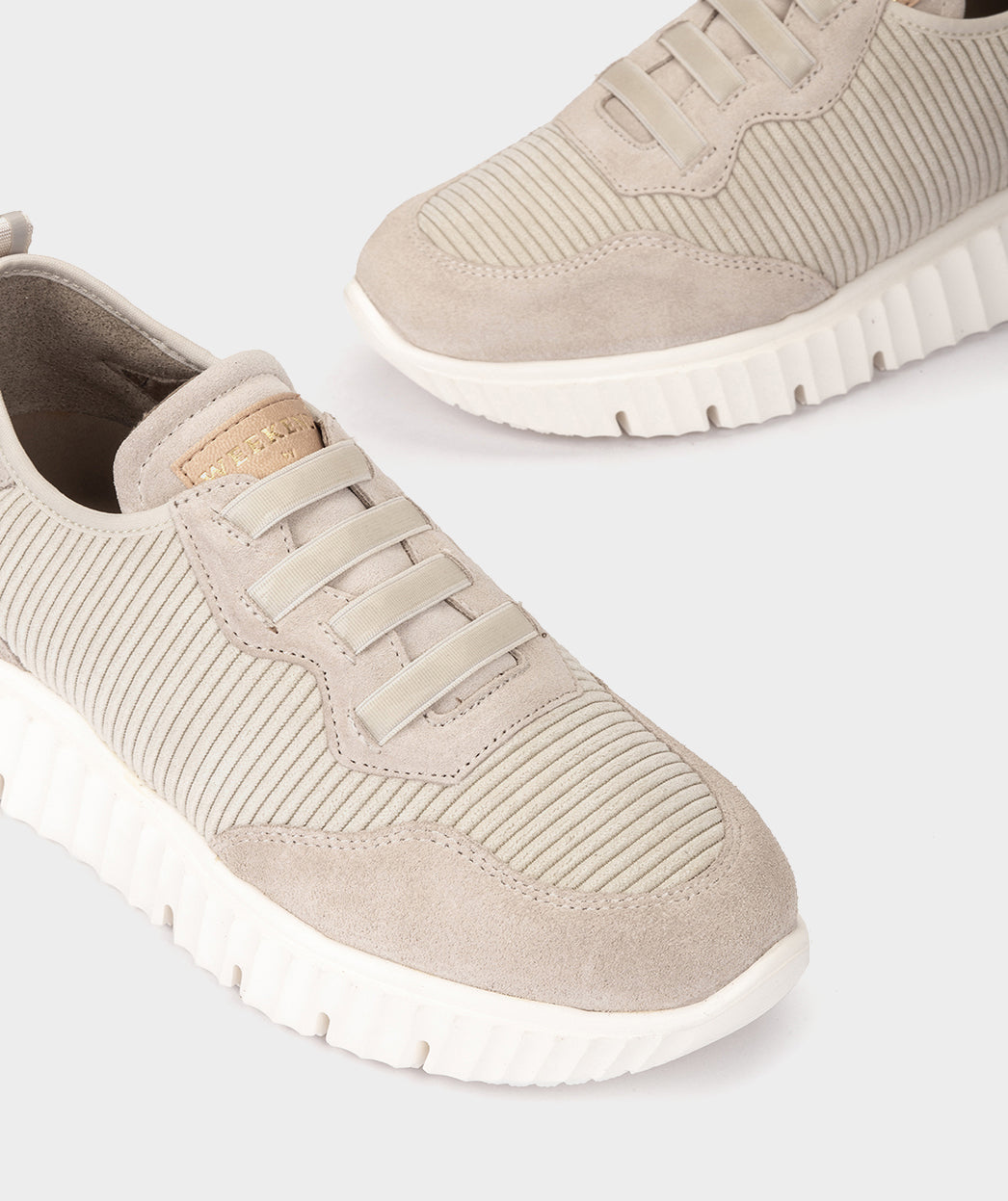 Zapatillas de pana de color crema. Estas zapatillas destacan por su comodidad y originalidad lo que las convierte en un fondo de armario perfecto.