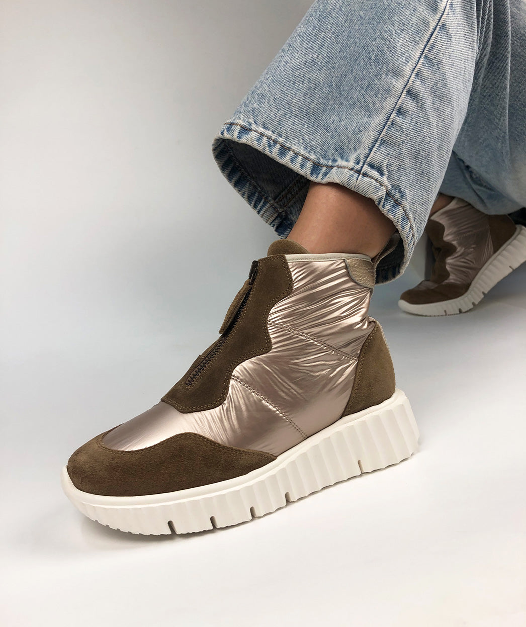 Botines deportivos de tejido en color metalizado humo. Se convertirán en los protagonistas de la temporada aportando estilo a tus looks más casuals.