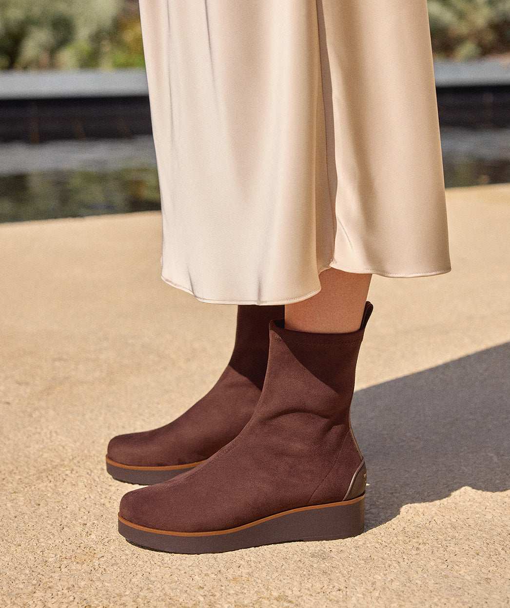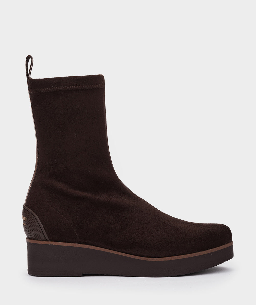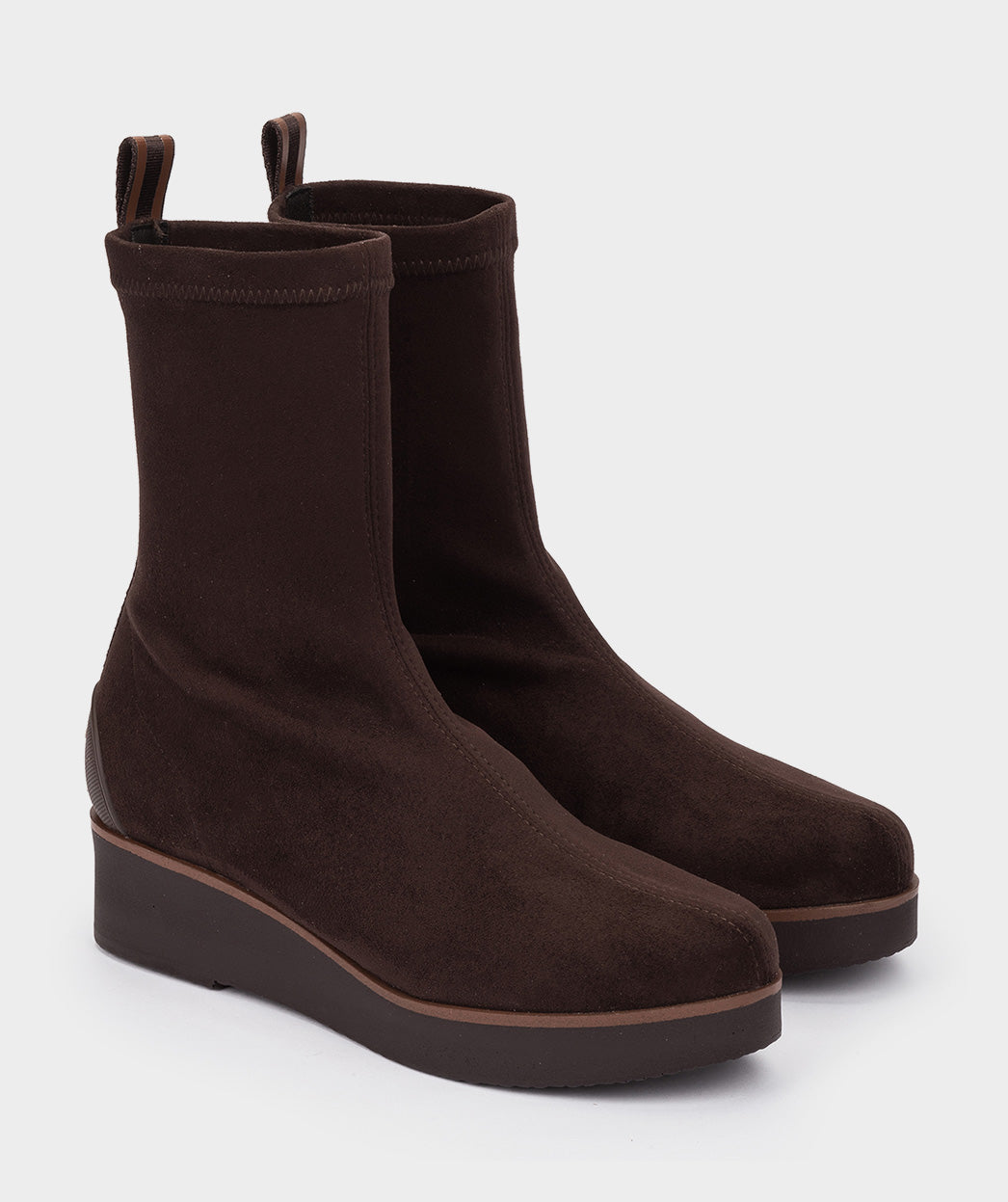 Botines de tejido elástico de color marrón oscuro. Apuesta por la comodidad en tus looks de diario con estos botines. Te encantará su tejido elástico, perfecto para una correcta sujeción.