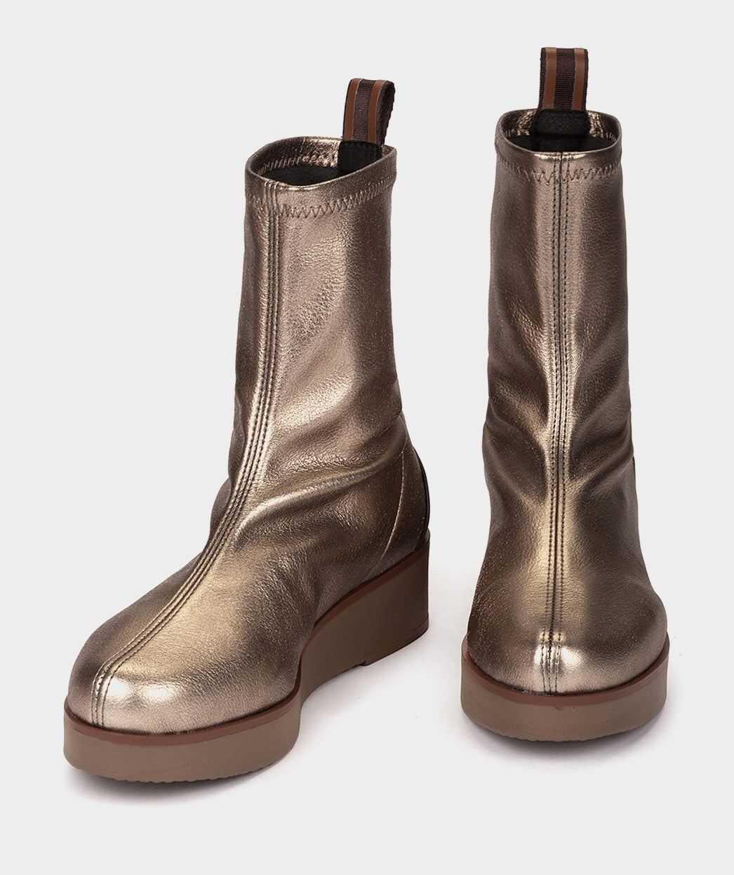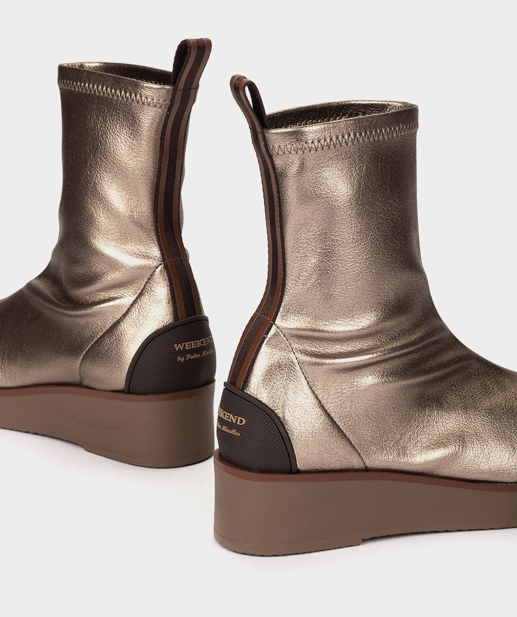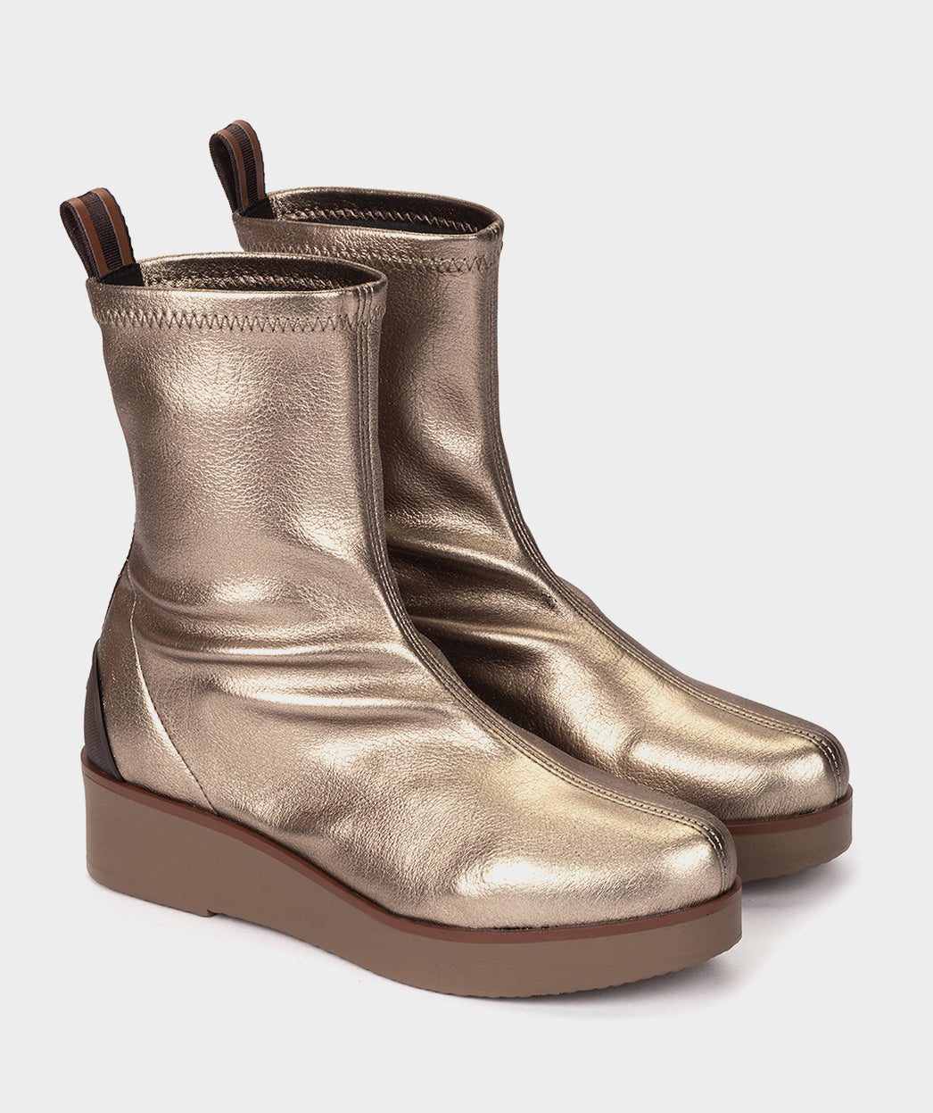 Botines de tejido elástico metalizado de color platino. Apuesta por la comodidad en tus looks de diario con estos botines. Te encantará su tejido elástico, perfecto para una correcta sujeción.