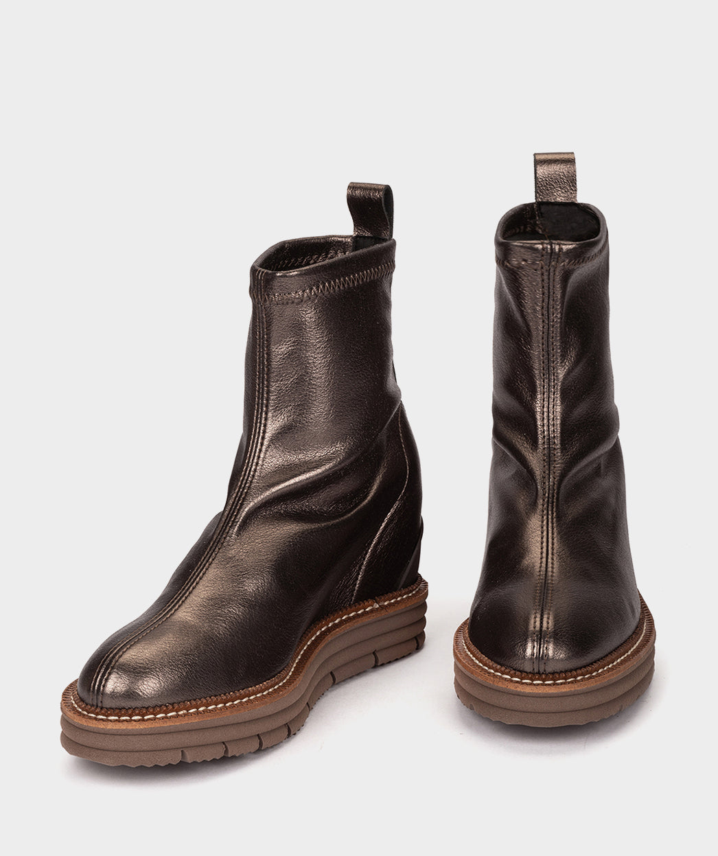 Botín de tejido elástico metalizado. Este botín es perfecto para tus looks casuales.¡ Ponte estos botines y preparate para caminar con confianza e irradiar un estilo original!