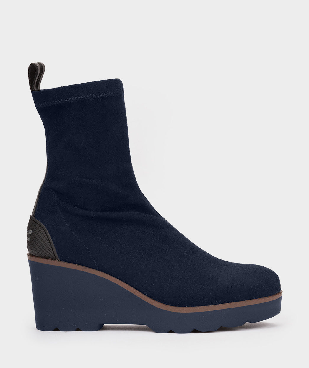 Botines de tejido elástico efecto ante de color azul marino. Los botines HITA están confeccionados con nuestro popular tejido elástico para un ajuste óptimo. Este modelo básico y atemporal se convertirá en un imprescindible de tu armario.