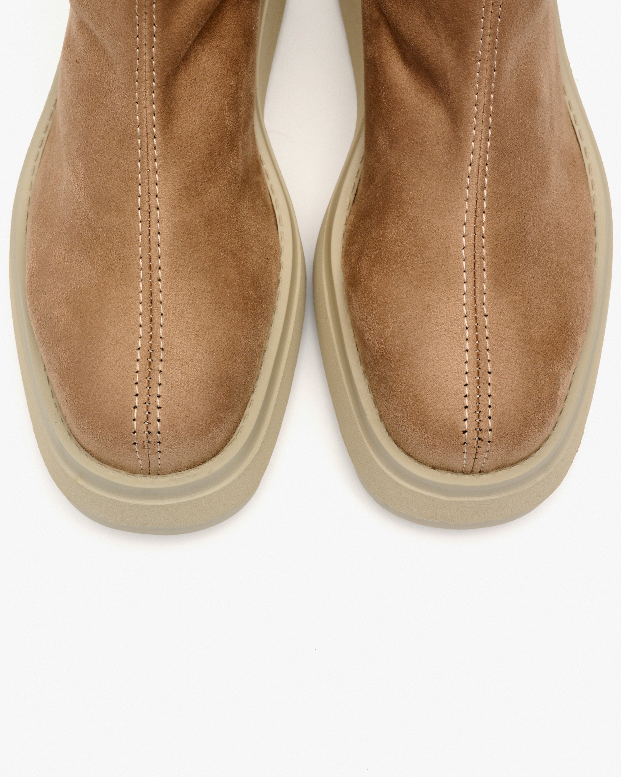 Botines de tejido elástico efecto ante de color beige. Diseño perfecto para lucir con estilismos casual, combina comodidad y estilo. El modelo TIERRENO se adapta a ti, ofreciendo un ajuste impecable como si de un calcetín se tratara.