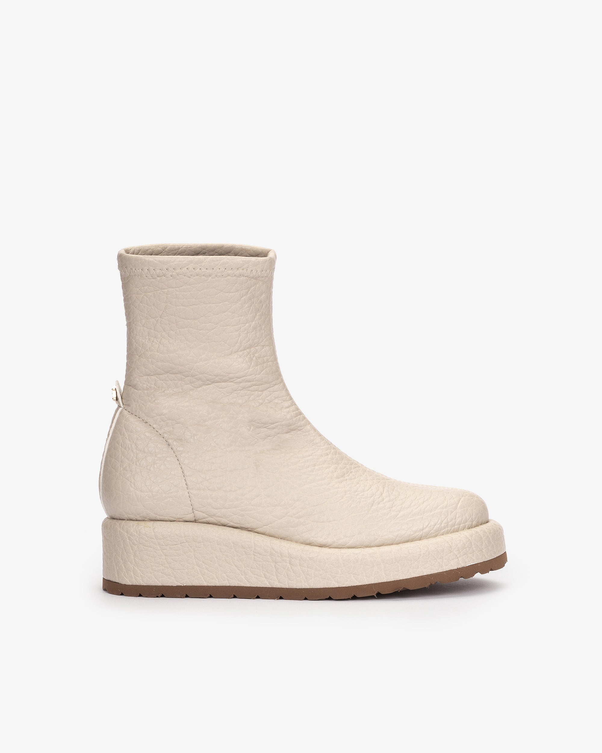 Botines de tejido elástico efecto piel de color blanco. El equilibrio perfecto entre comodidad y estilo. Su material elástico abraza la figura a la perfección, mientras que la plataforma ofrece un toque de altura sin renunciar a la comodidad. Un modelo casual, ideal para conseguir un look moderno y actual.