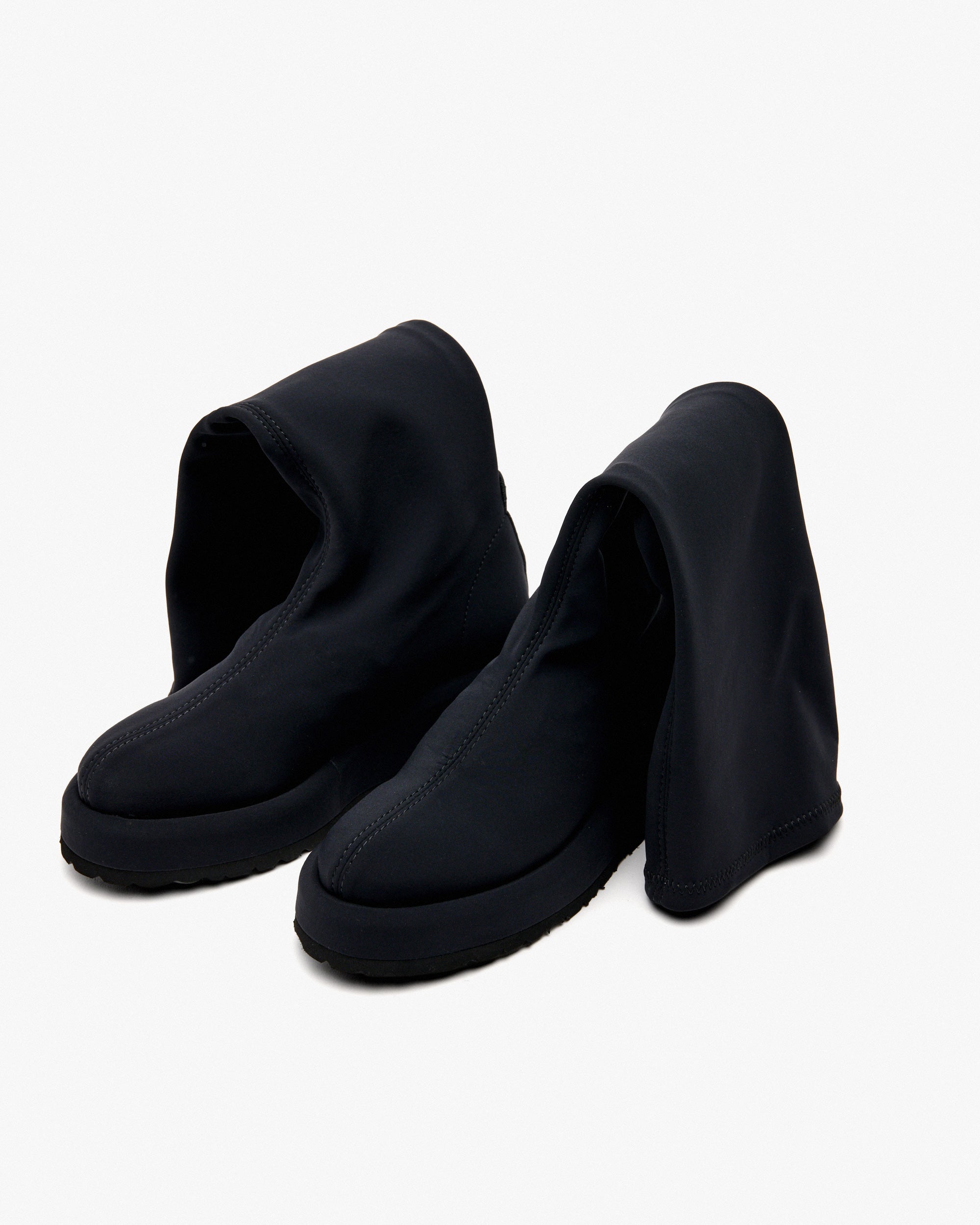 Botas de tejido elástico efecto piel de color negro. Diseñada para una comodidad óptima y un estilo atrevido. Su material elástico se adapta perfectamente a la pierna, mientras que la plataforma aporta altura y estabilidad. Su horma ancha garantiza un ajuste espacioso y agradable incluso después de horas de uso.