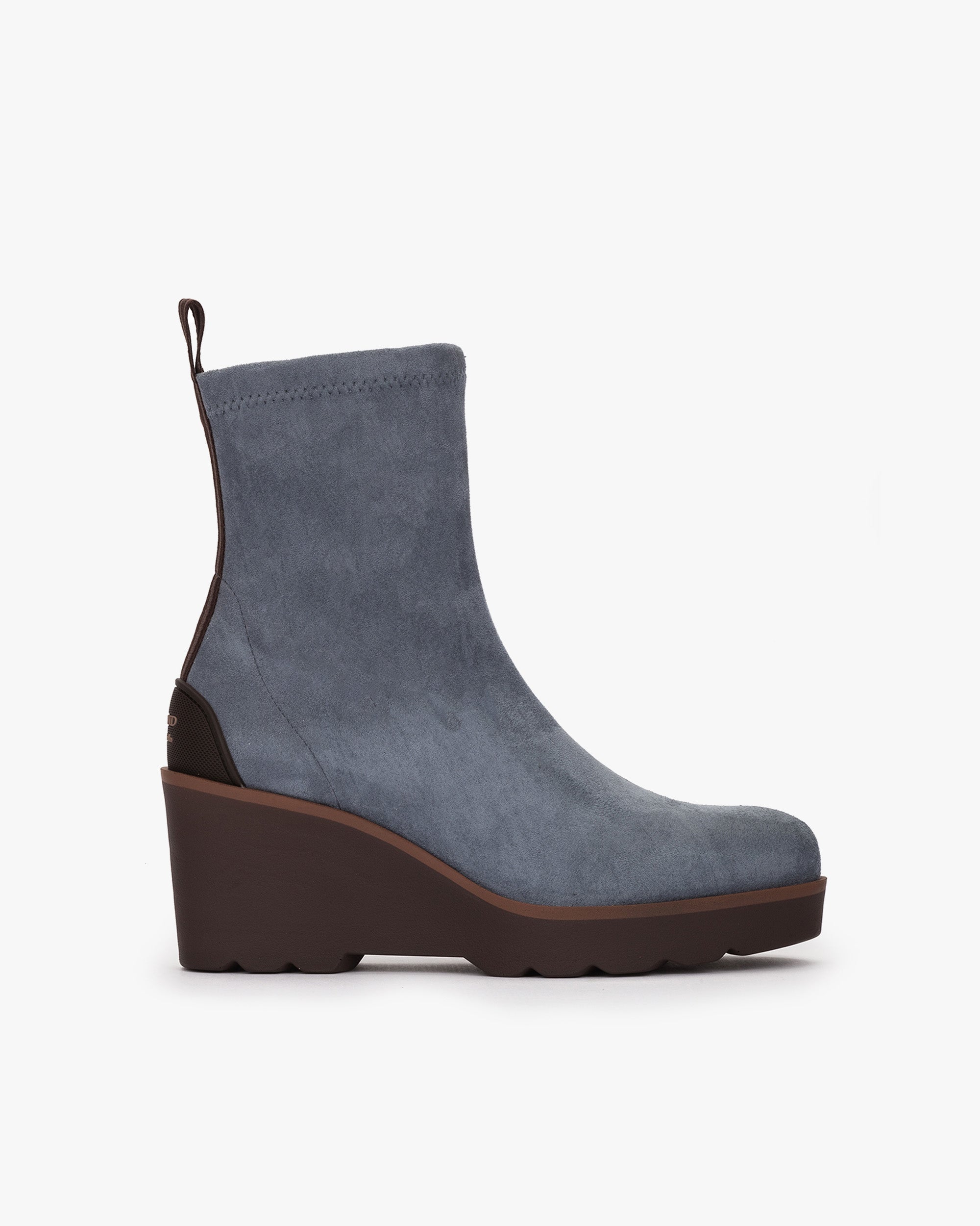 Botines de tejido elástico efecto ante de color azul. Los botines Hita están confeccionados con nuestro popular tejido elástico para un ajuste óptimo. Su horma ancha garantiza un ajuste espacioso y agradable incluso después de horas de uso.