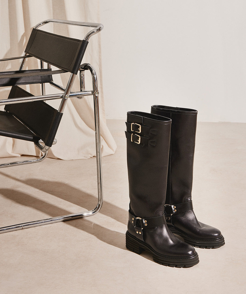 Botas estilo biker de piel de color negro. Un modelo moderno que sigue la tendencia biker de la temporada.